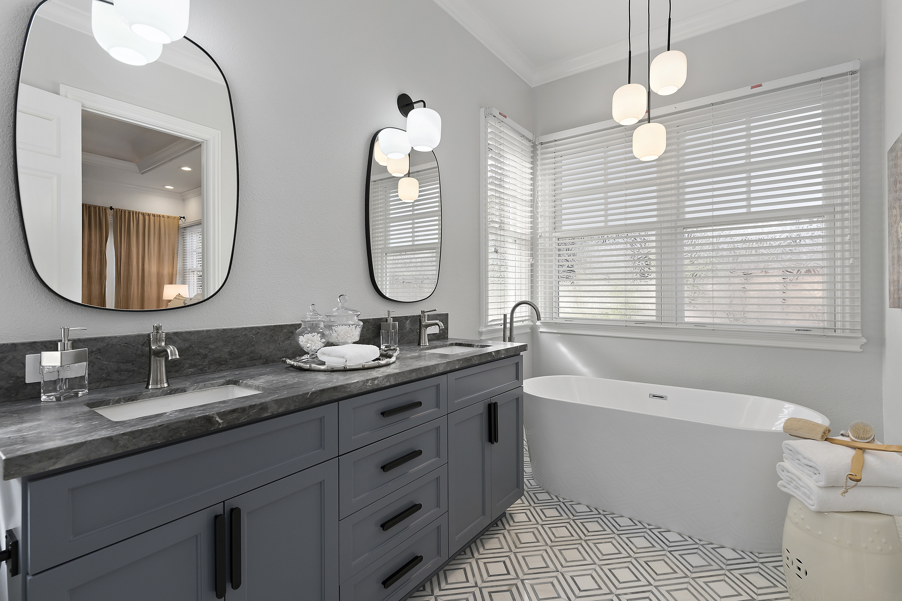 Primary Suite Retreat Features 2 Walk-in Closets, Double Sinks, Standalone Tub, and a Stall Shower