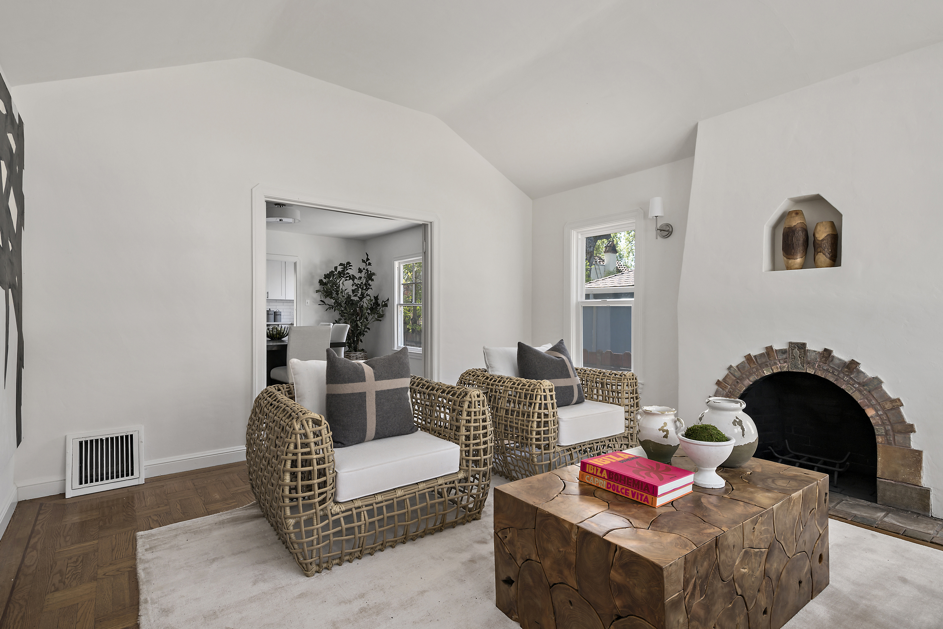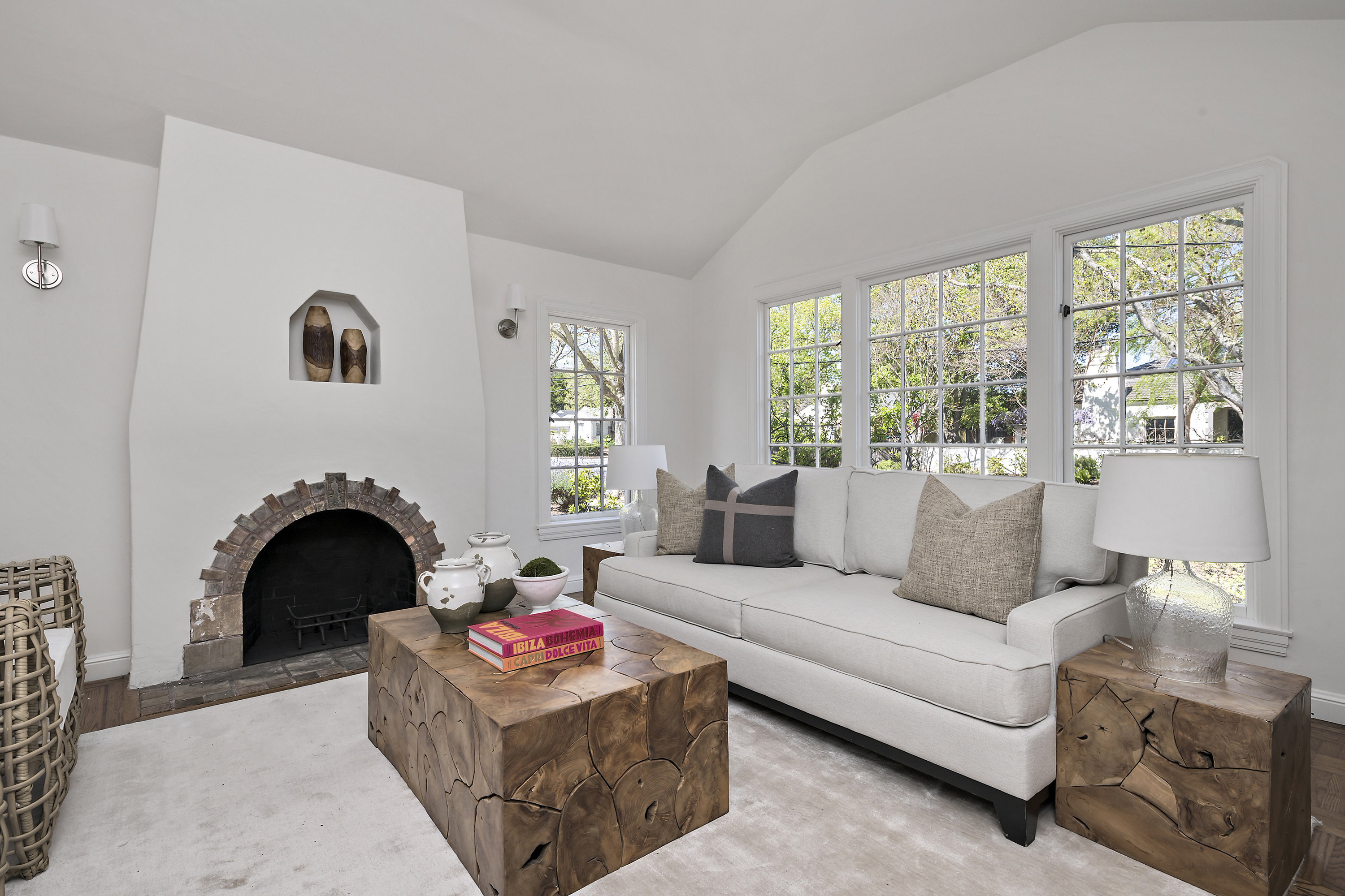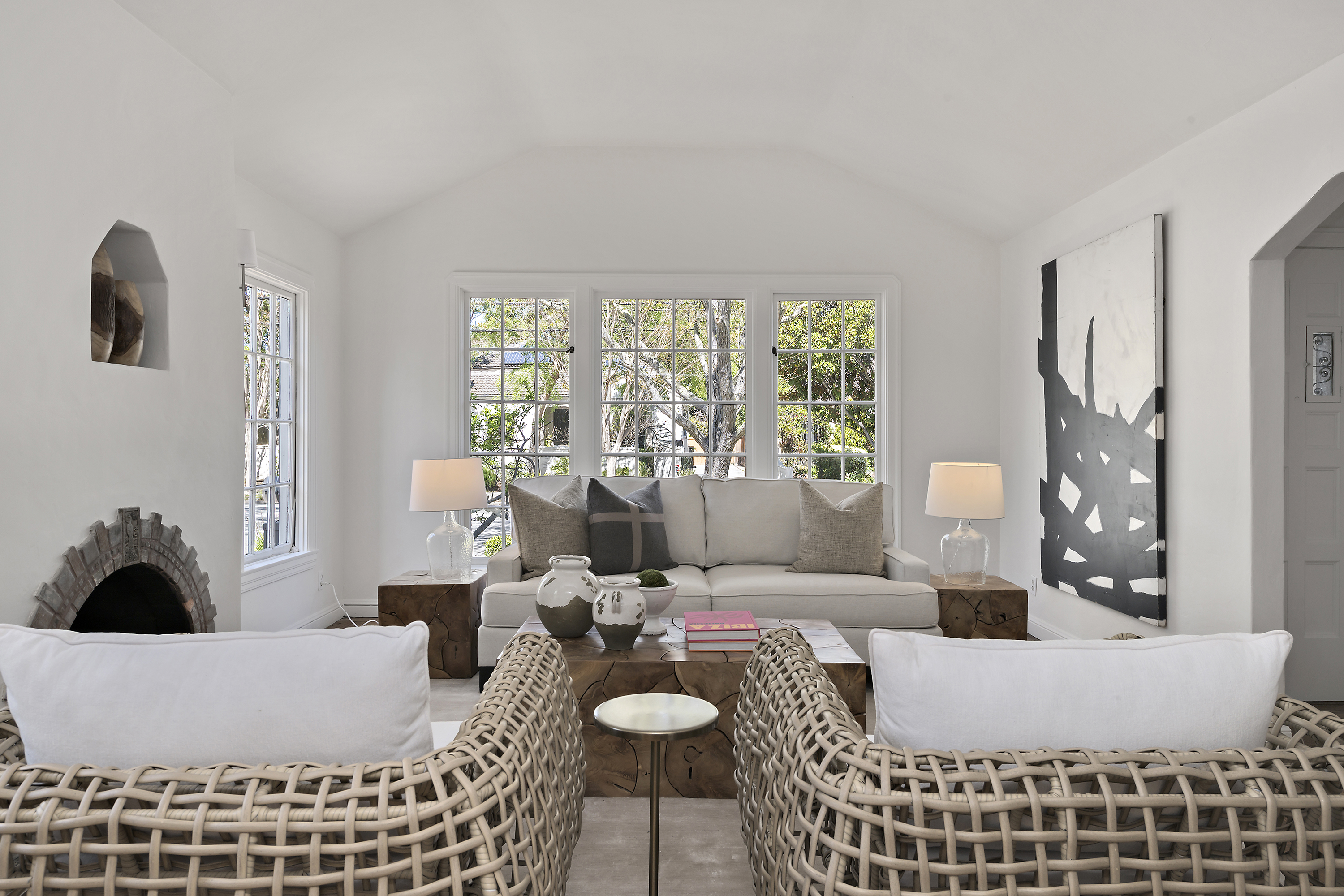 Elegant Living Room with Fireplace and High Ceilings