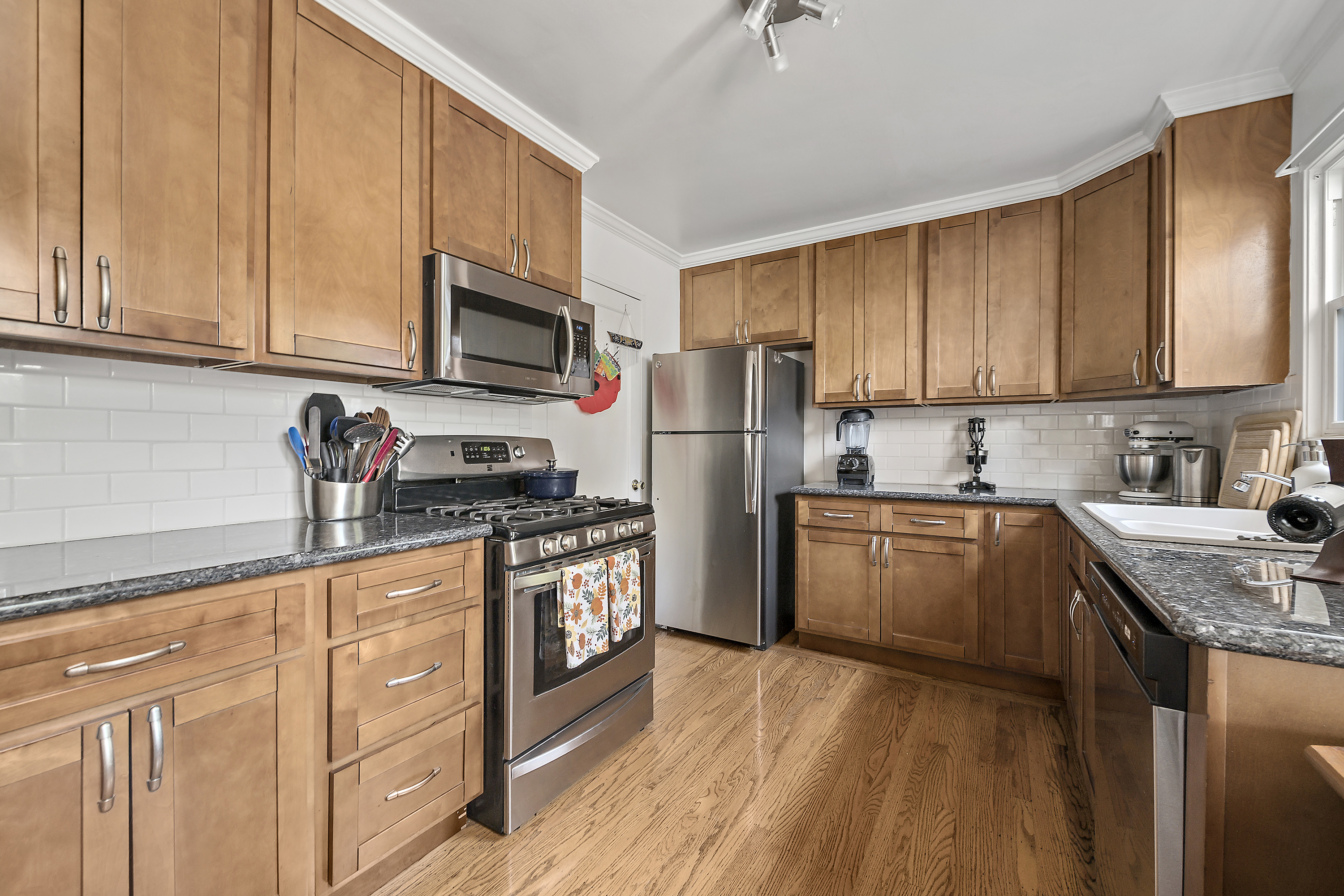 Bright Kitchen with Stainless Steel Appliances and Ample Natural Light