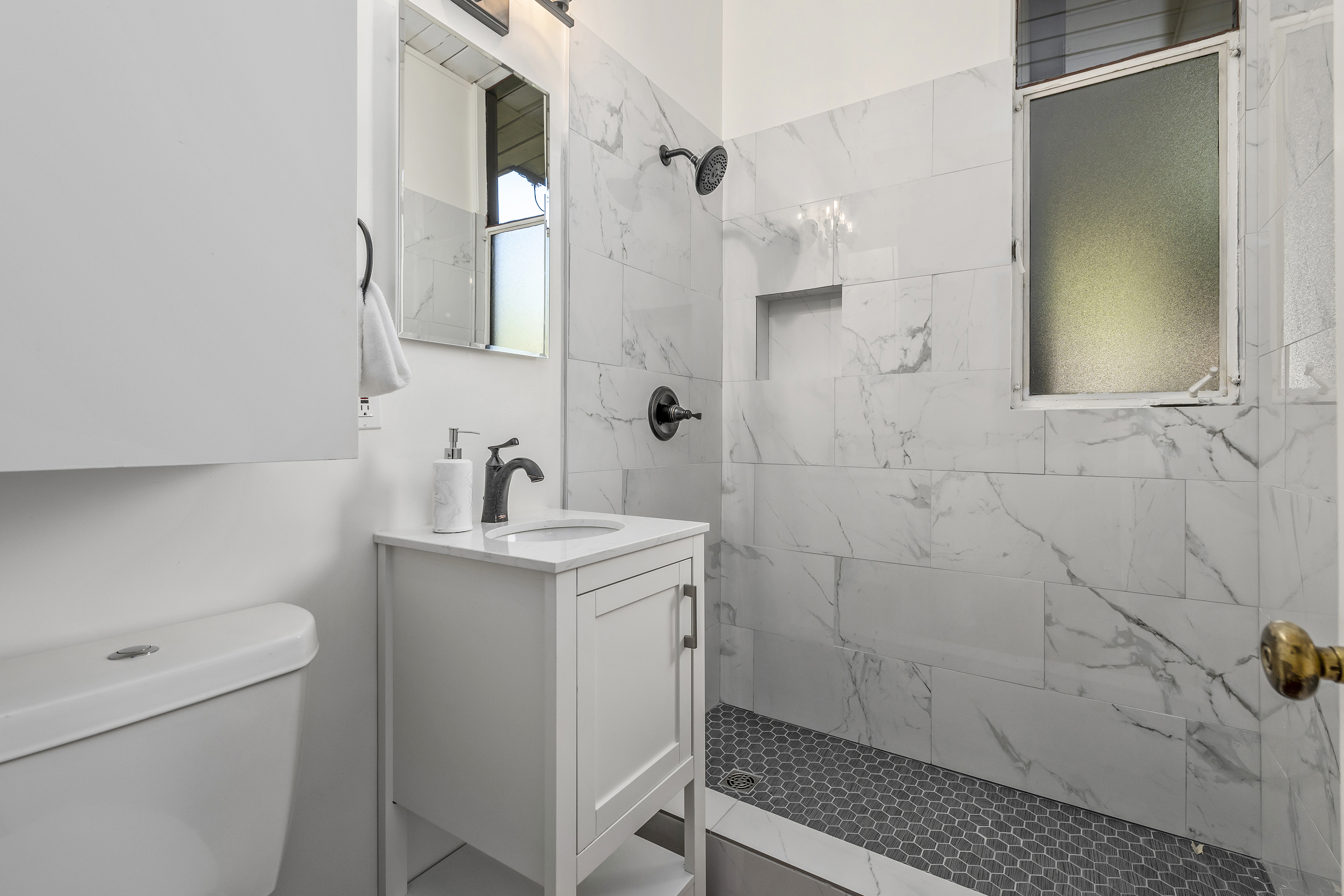 Primary Suite Retreat Features Remodeled Bathroom and Private Patio