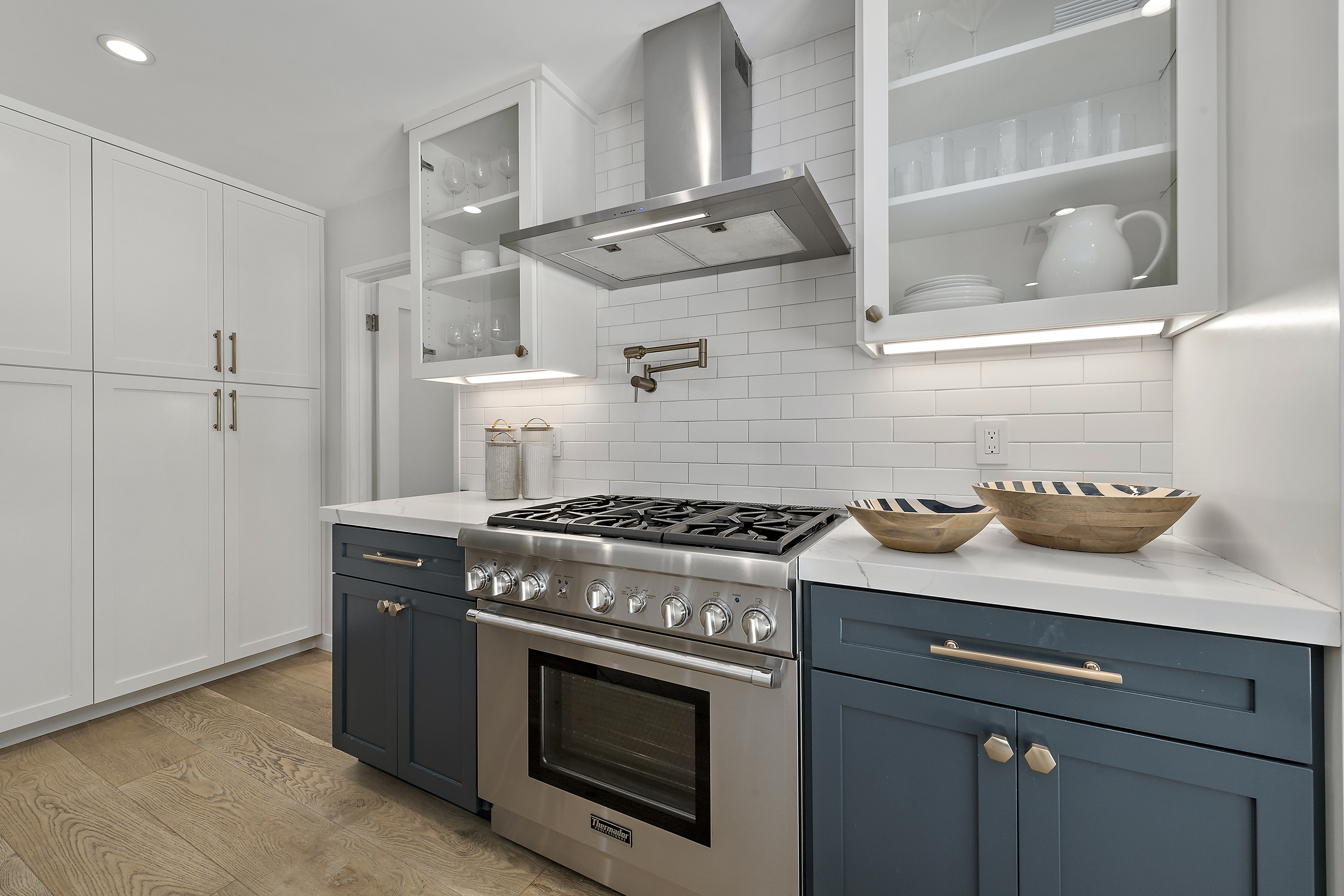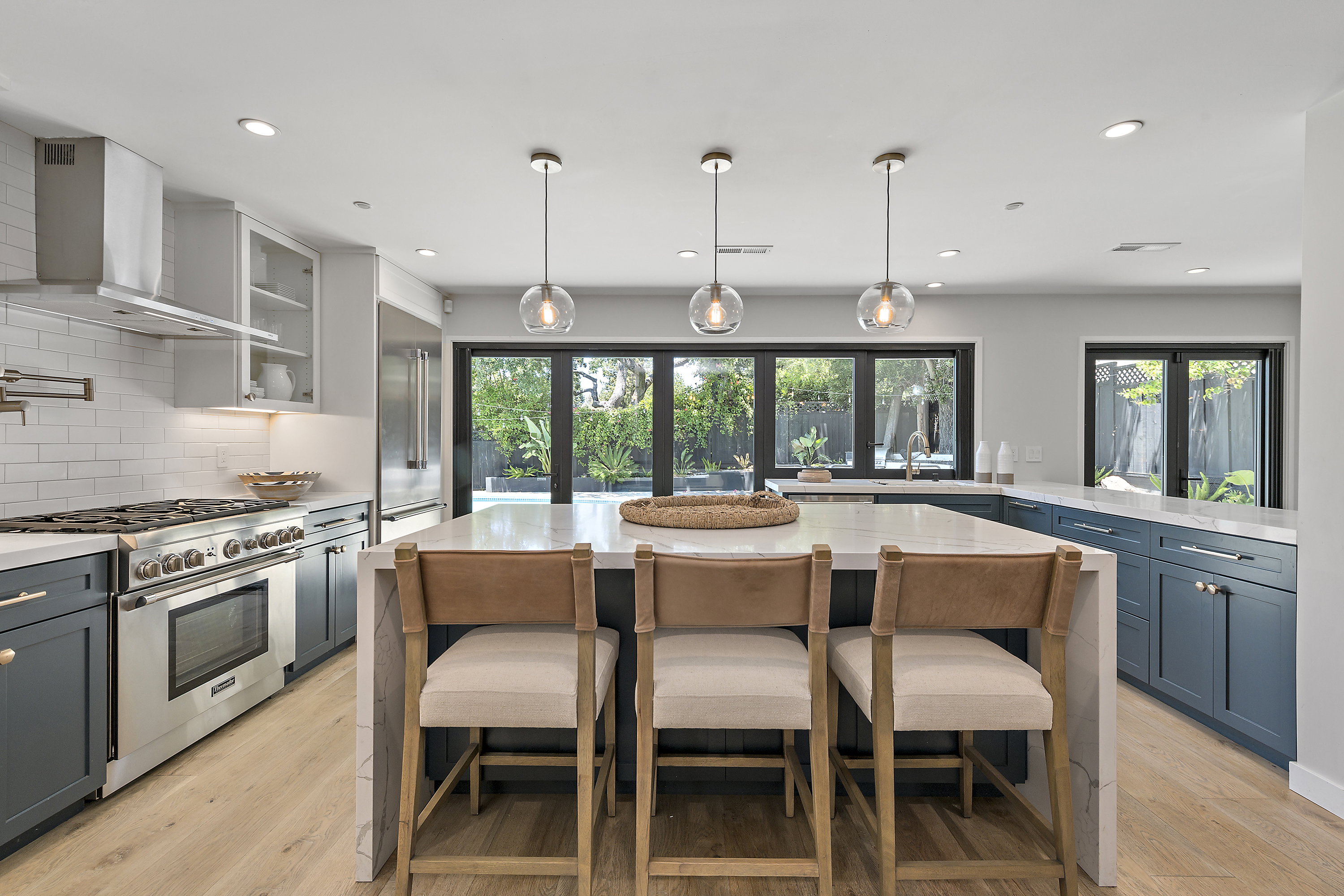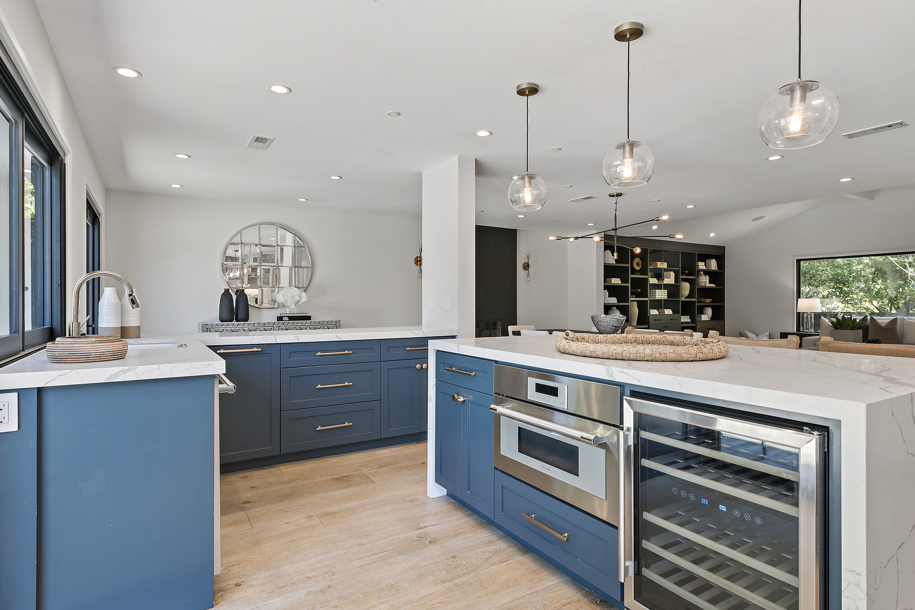 Chef's Eat-in Kitchen with Center Island, Thermador Appliances, and Wine Refrigerator