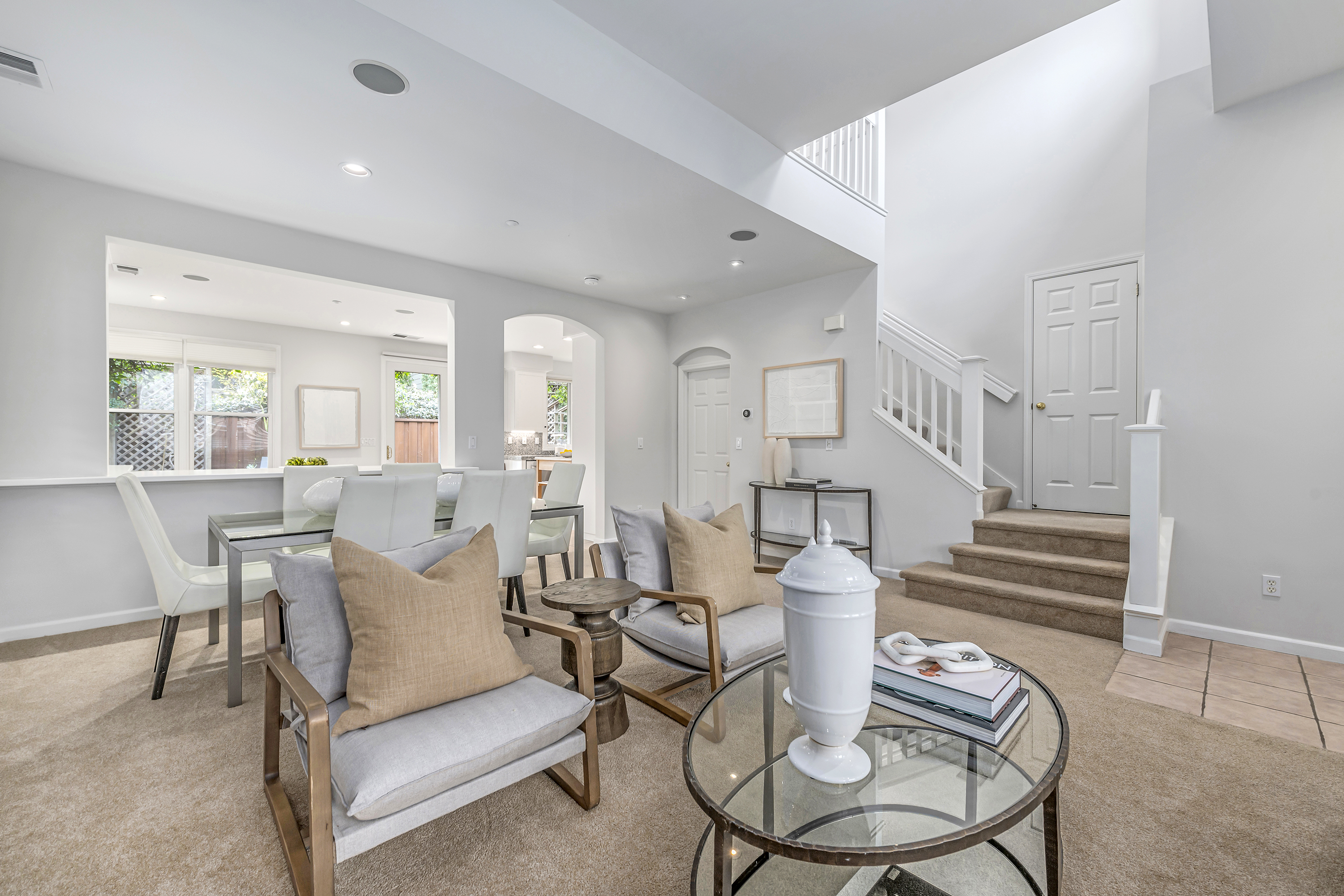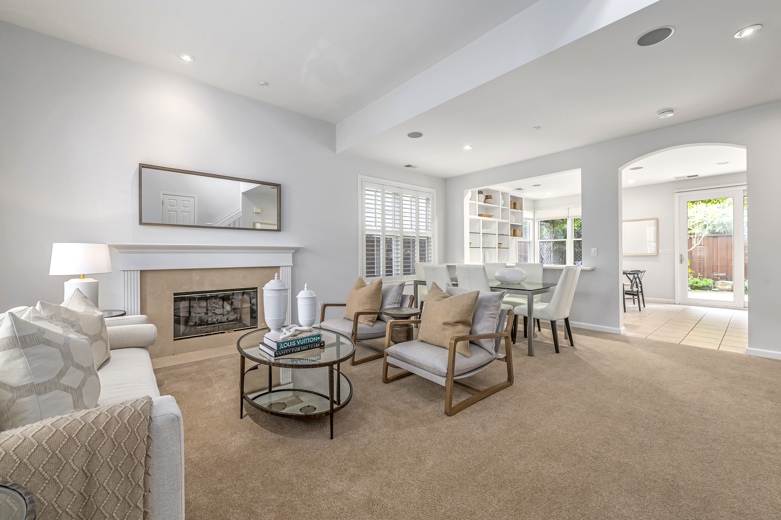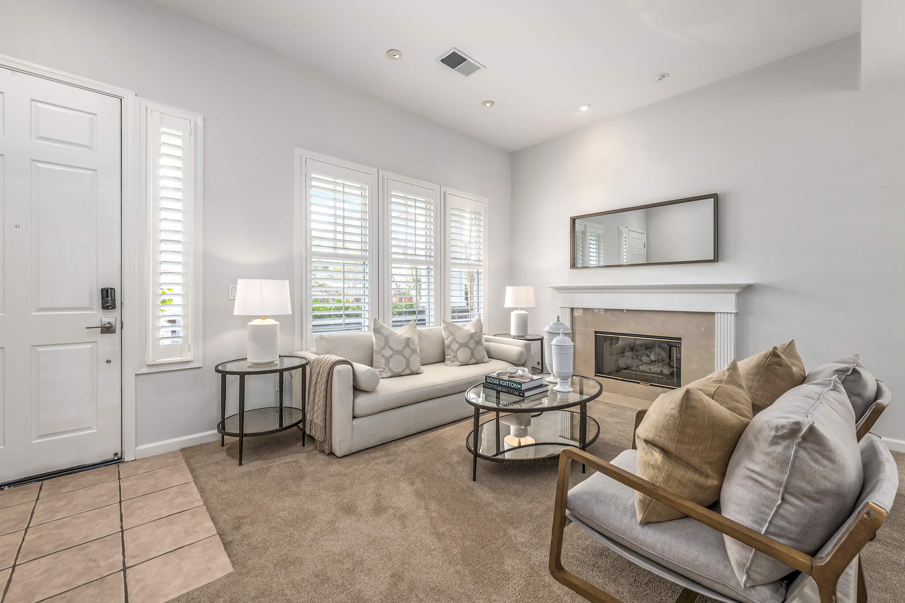 Elegant Living Room with Fireplace and High Ceilings