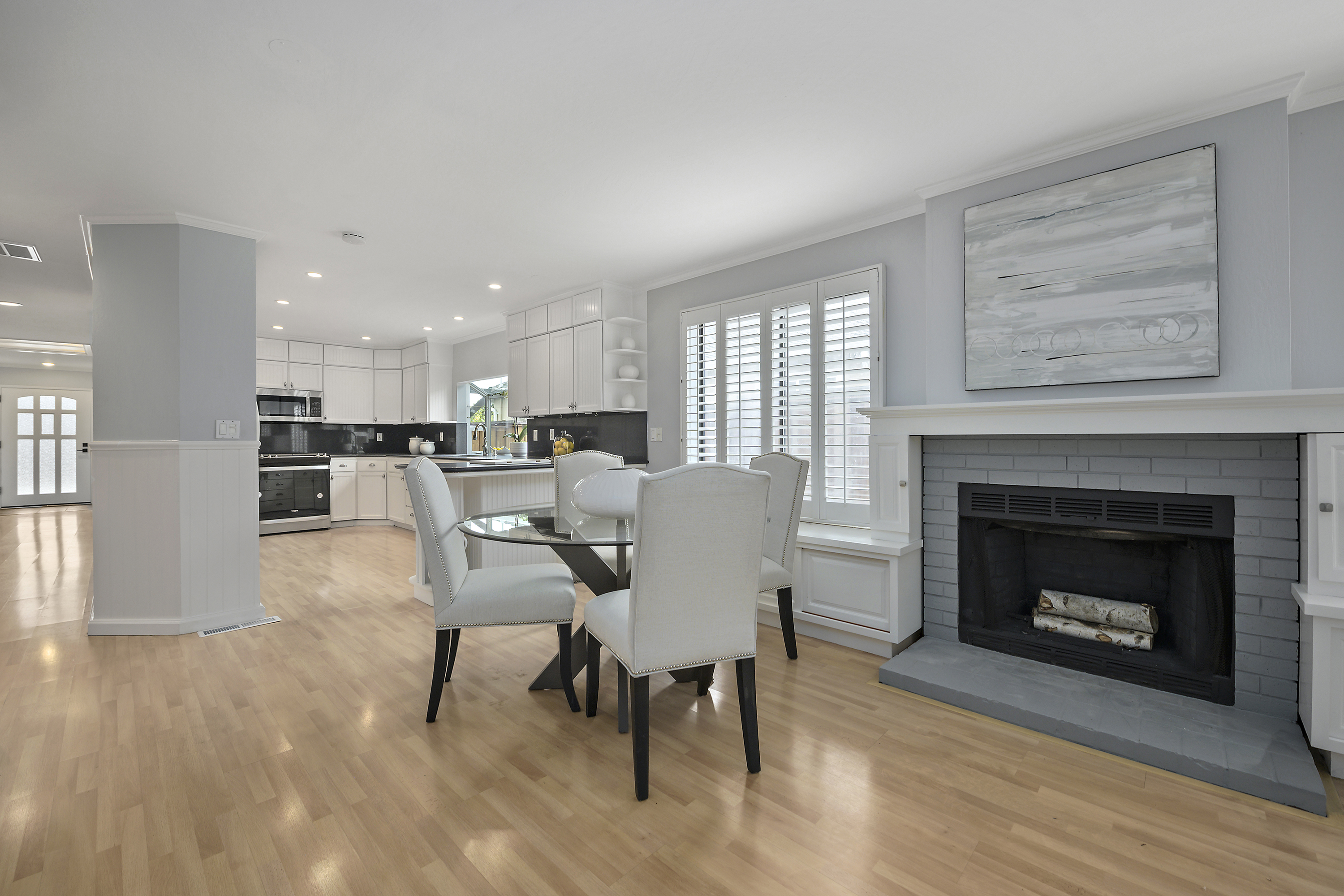 Chef's Eat-in Kitchen Opens to Family Room with Fireplace and Built-ins