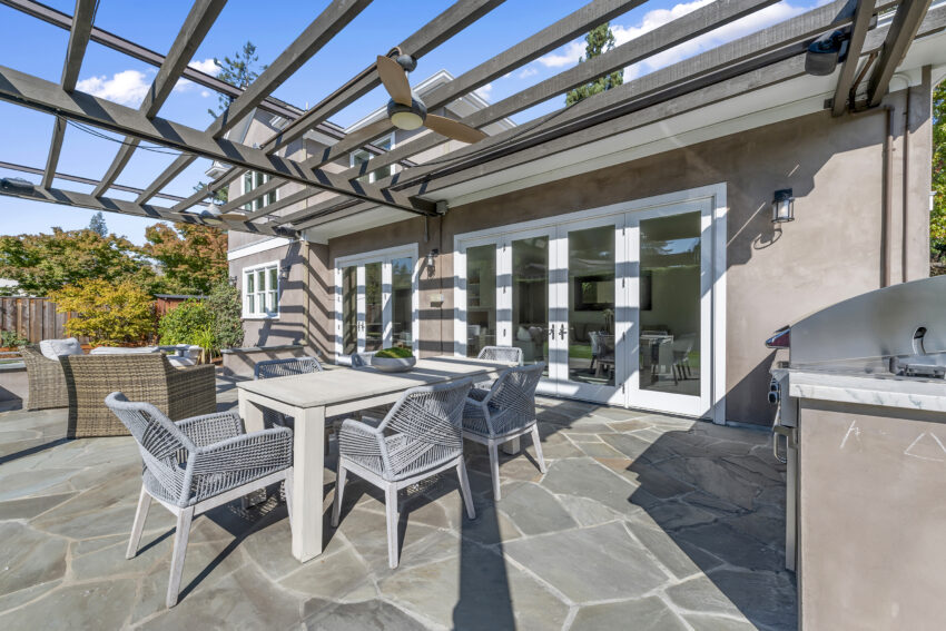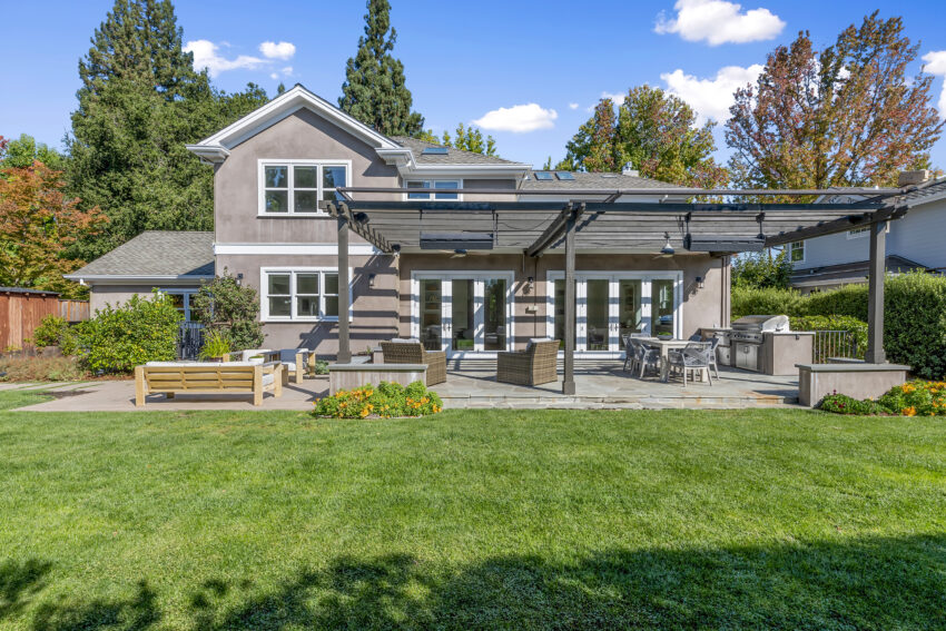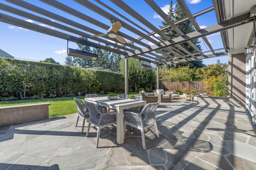 - Lovely Landscaped Yard with Outdoor Kitchen and Trellis with Automatic Shades