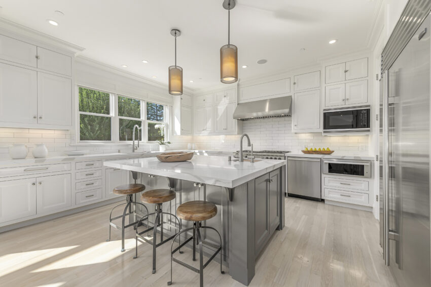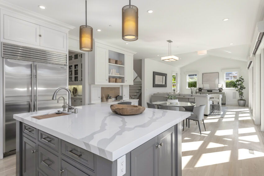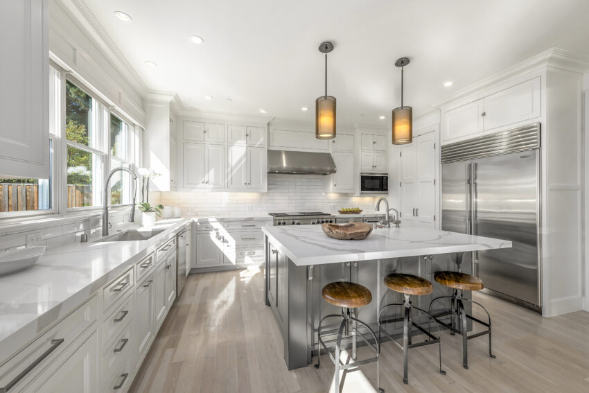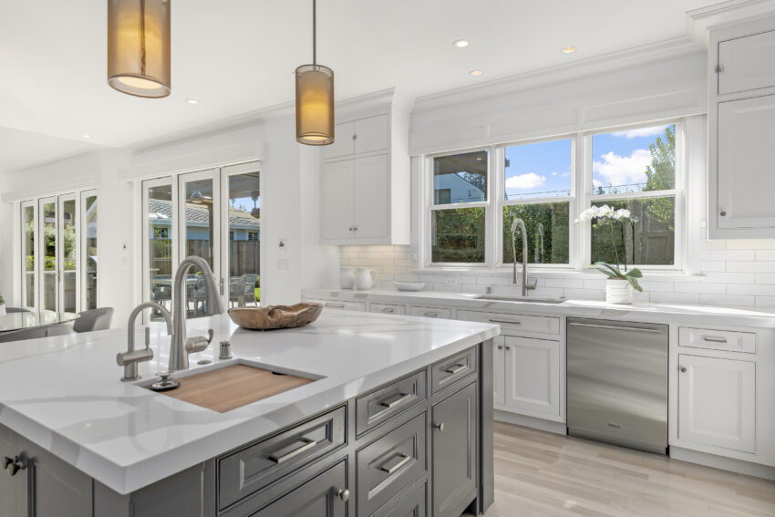 - Gourmet Kitchen with Inset Cabinetry and Center Island with Sink