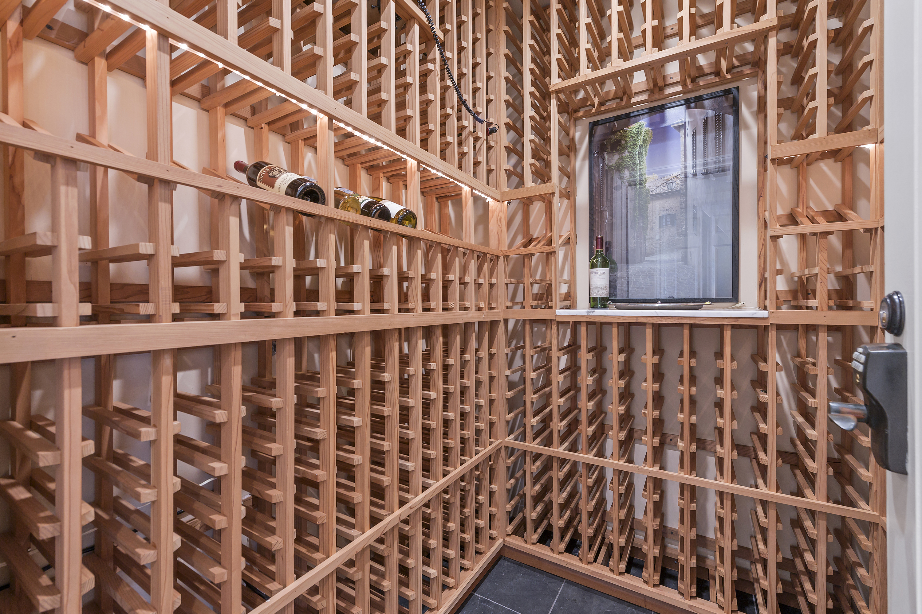 Main Floor Features Three Bedrooms, Laundry Room, Climate-Controlled Wine Room, Full Bathroom, and Half Bathroom