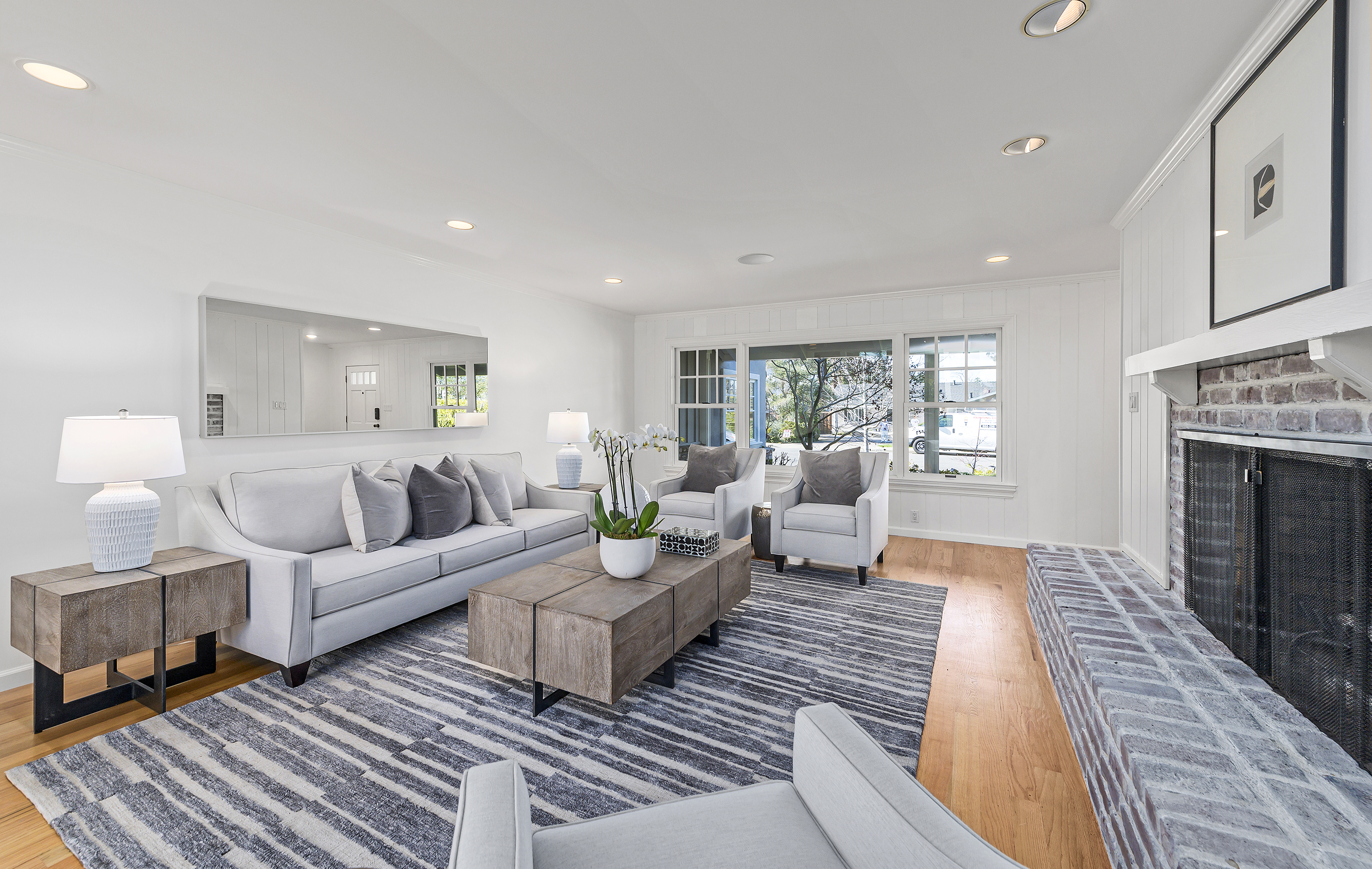 Elegant Living Room with Wood-Burning Fireplace with Gas Starter