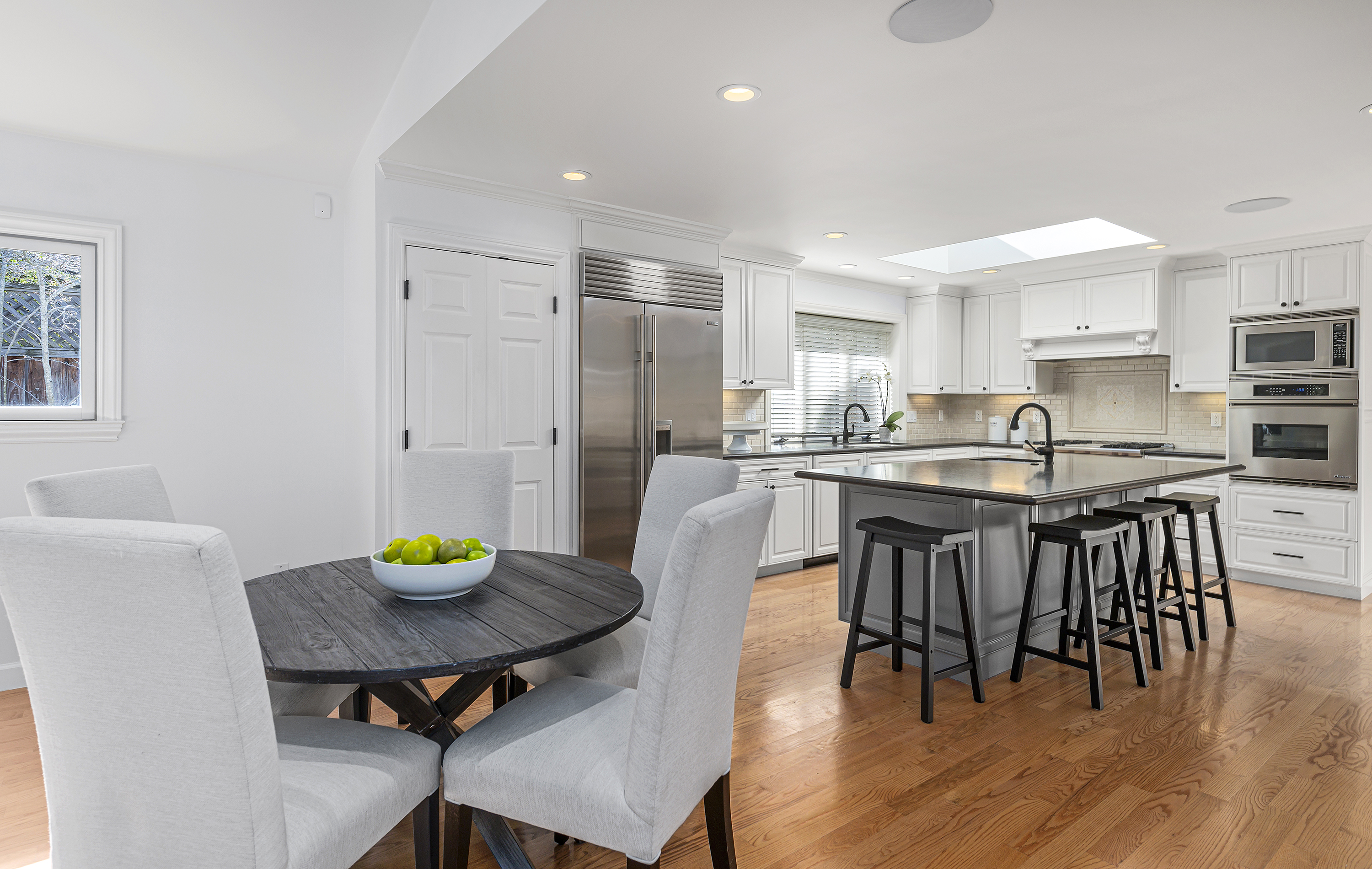 Chef's Eat-in Kitchen with Center Island features High-End Appliances (Wolf, Sub-Zero, etc.), 2 Ovens (Gas and Electric) and 3 dishwashers