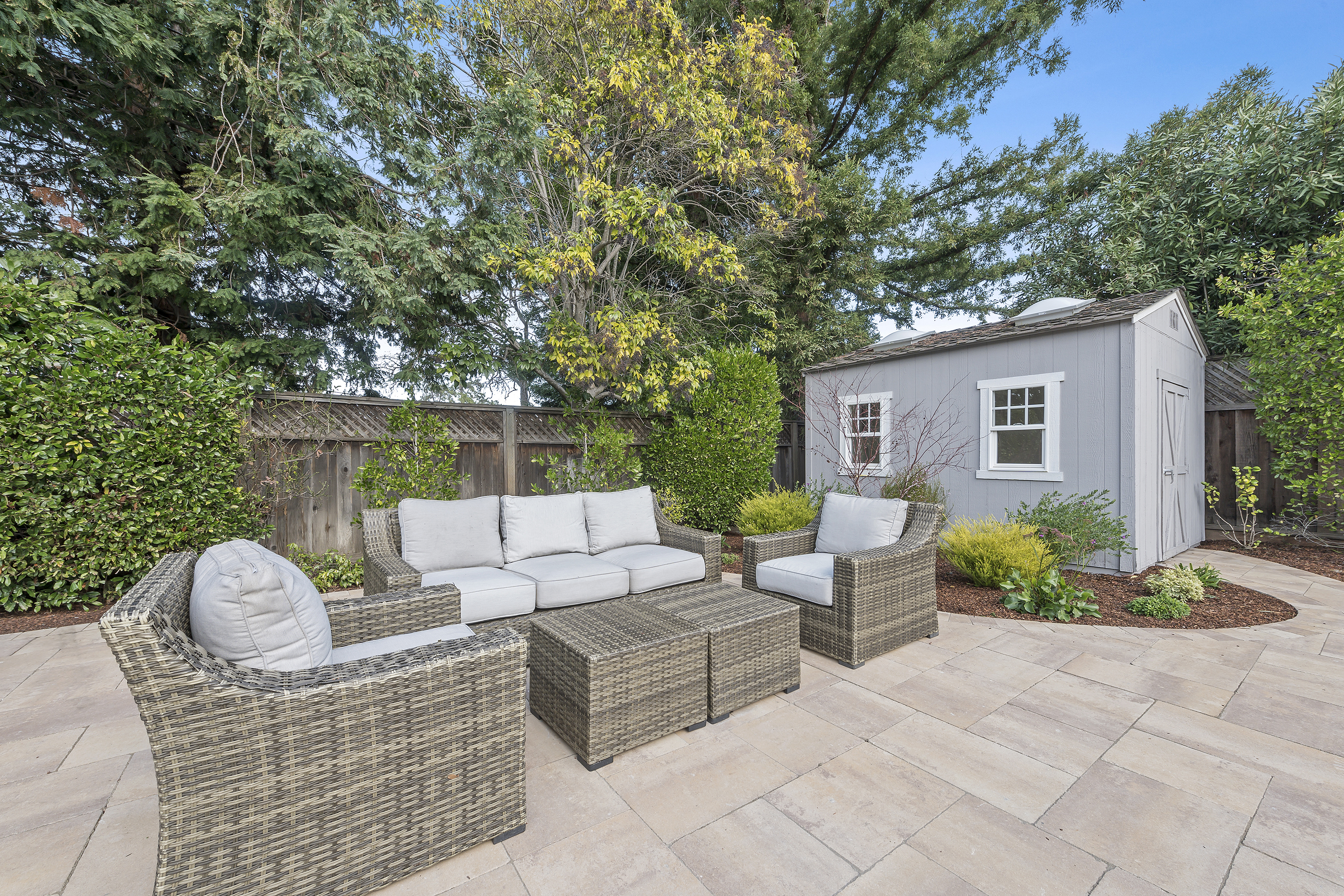Lovely Landscaped 10,012 +/- Lot with Sunny and Private Back Yard featuring an Updated Sparkling Pool and Spa with Waterfall, Outdoor Kitchen, Yoga Studio or Office, and Citrus Trees