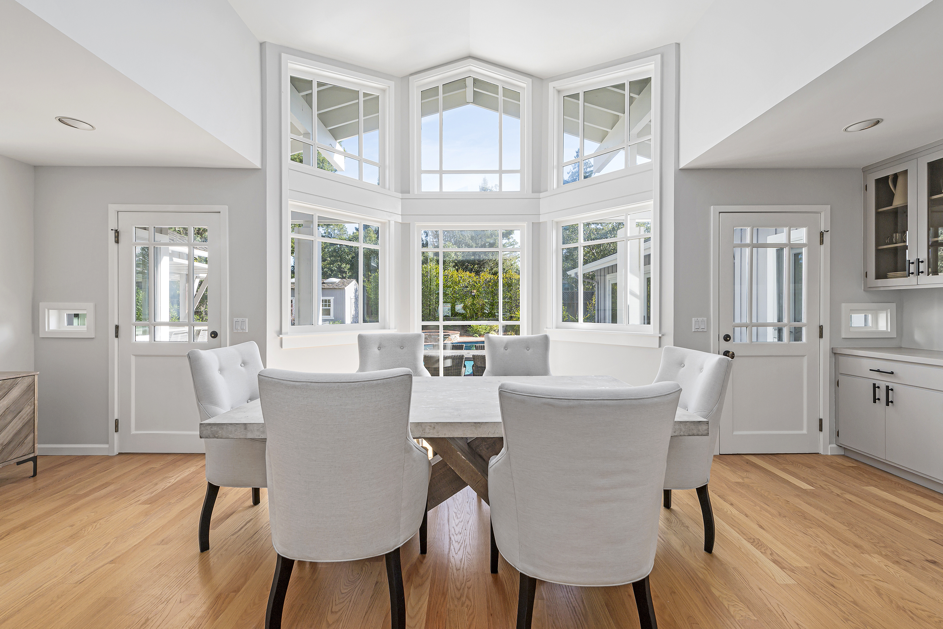 Formal Dining Room with Floor-to-Ceiling Windows and Built-ins