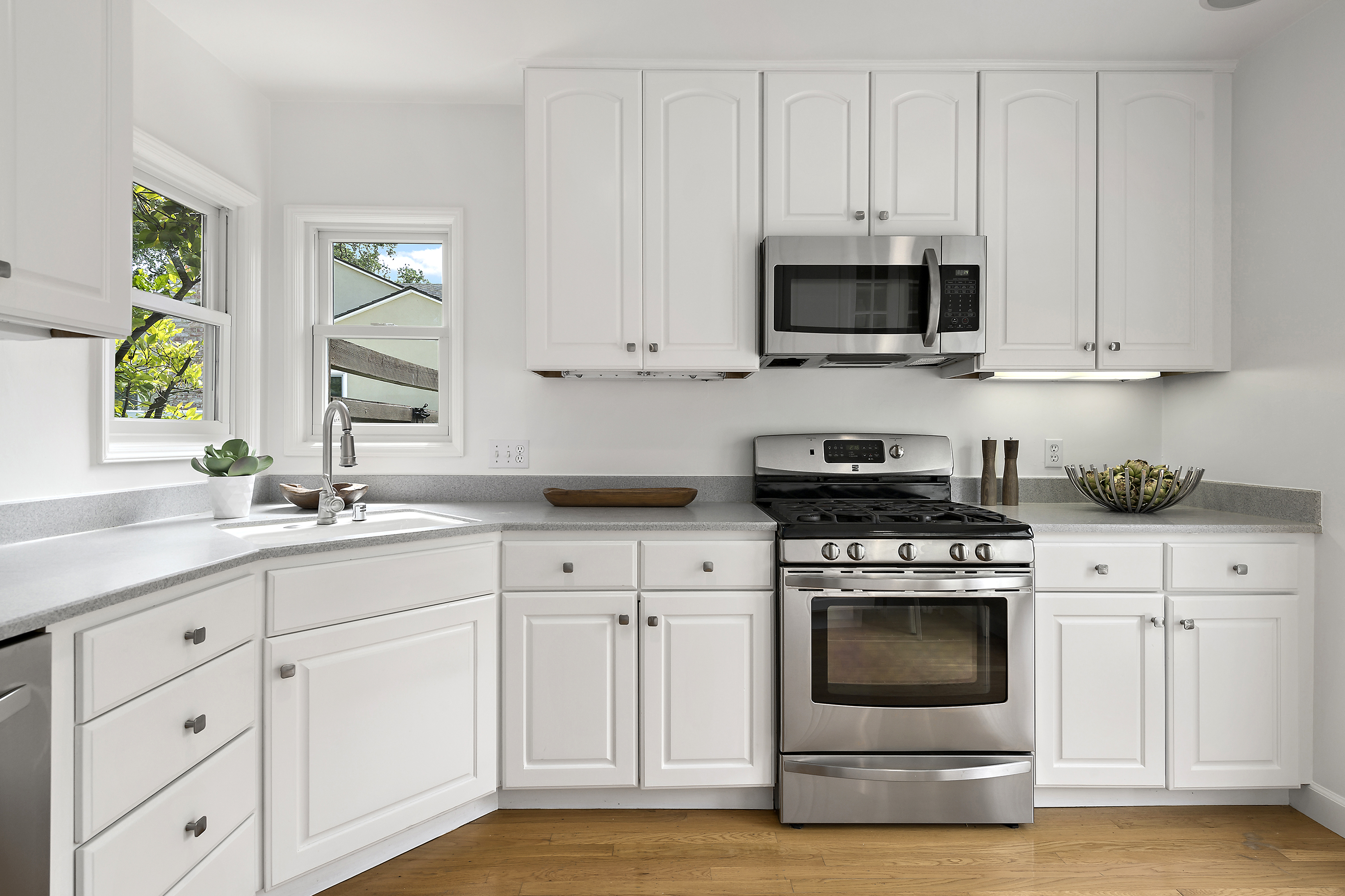 Bright Kitchen with Stainless Steel Appliances and Ample Storage