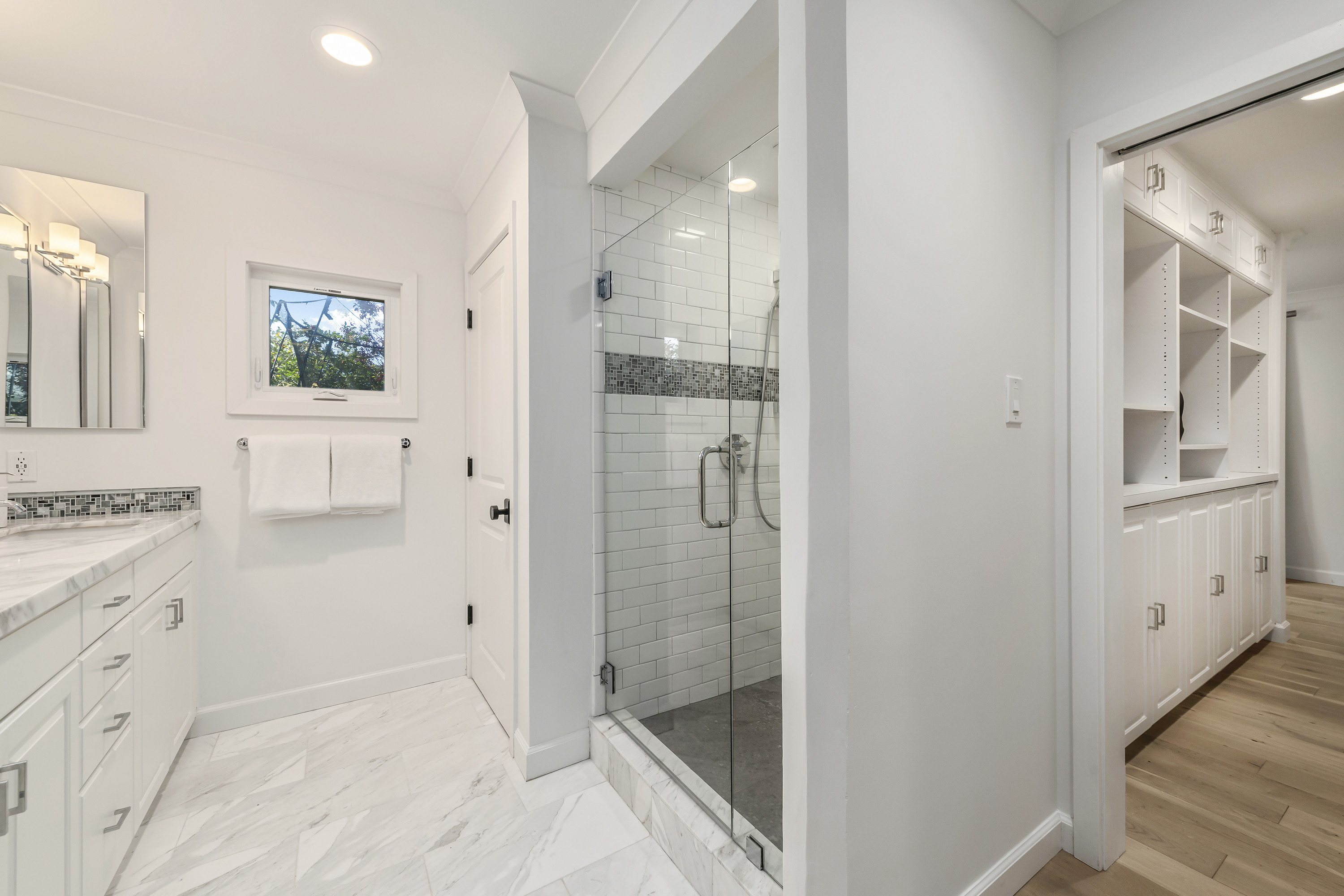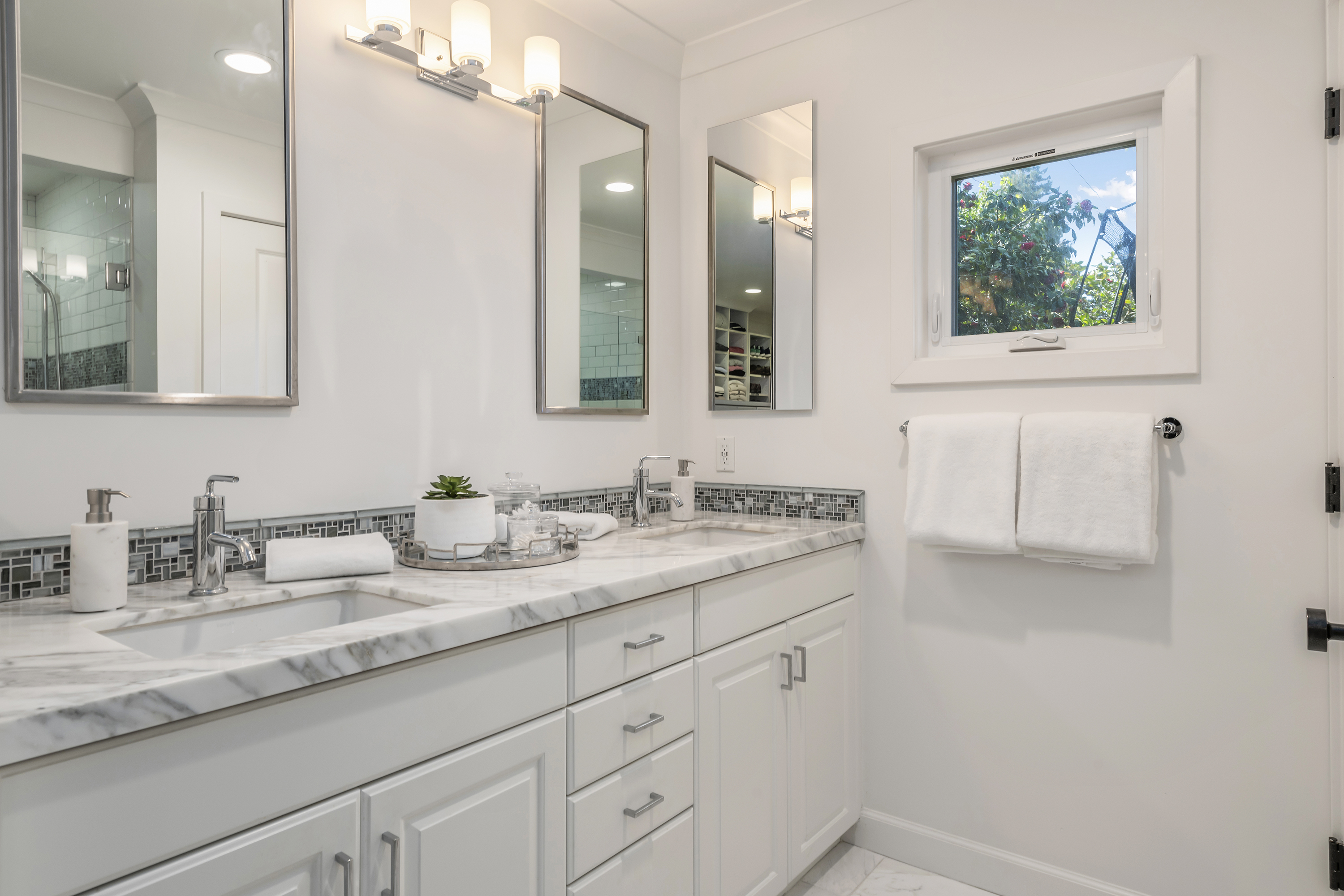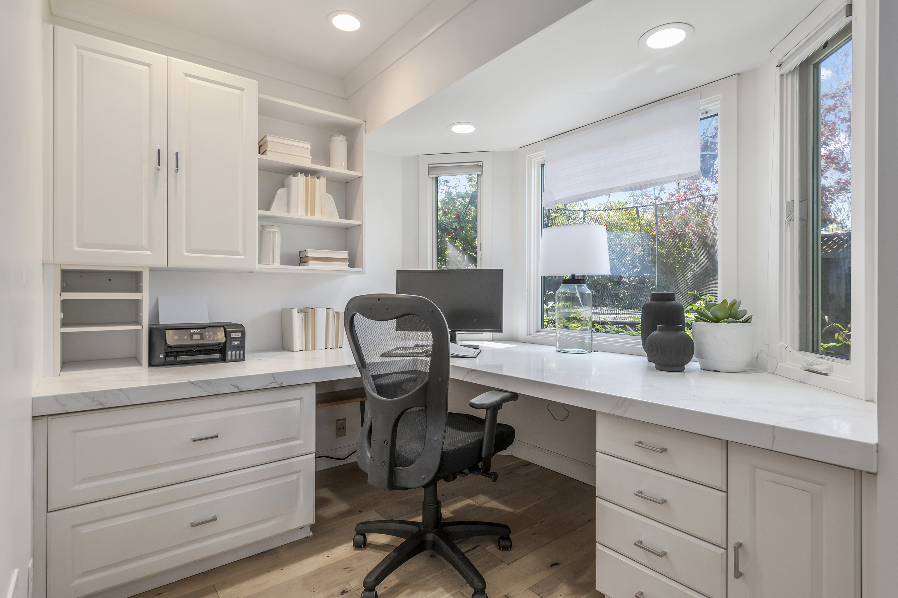 Primary Suite Retreat Features Walk-in Closet, Double Sinks, and Separate Office Area
