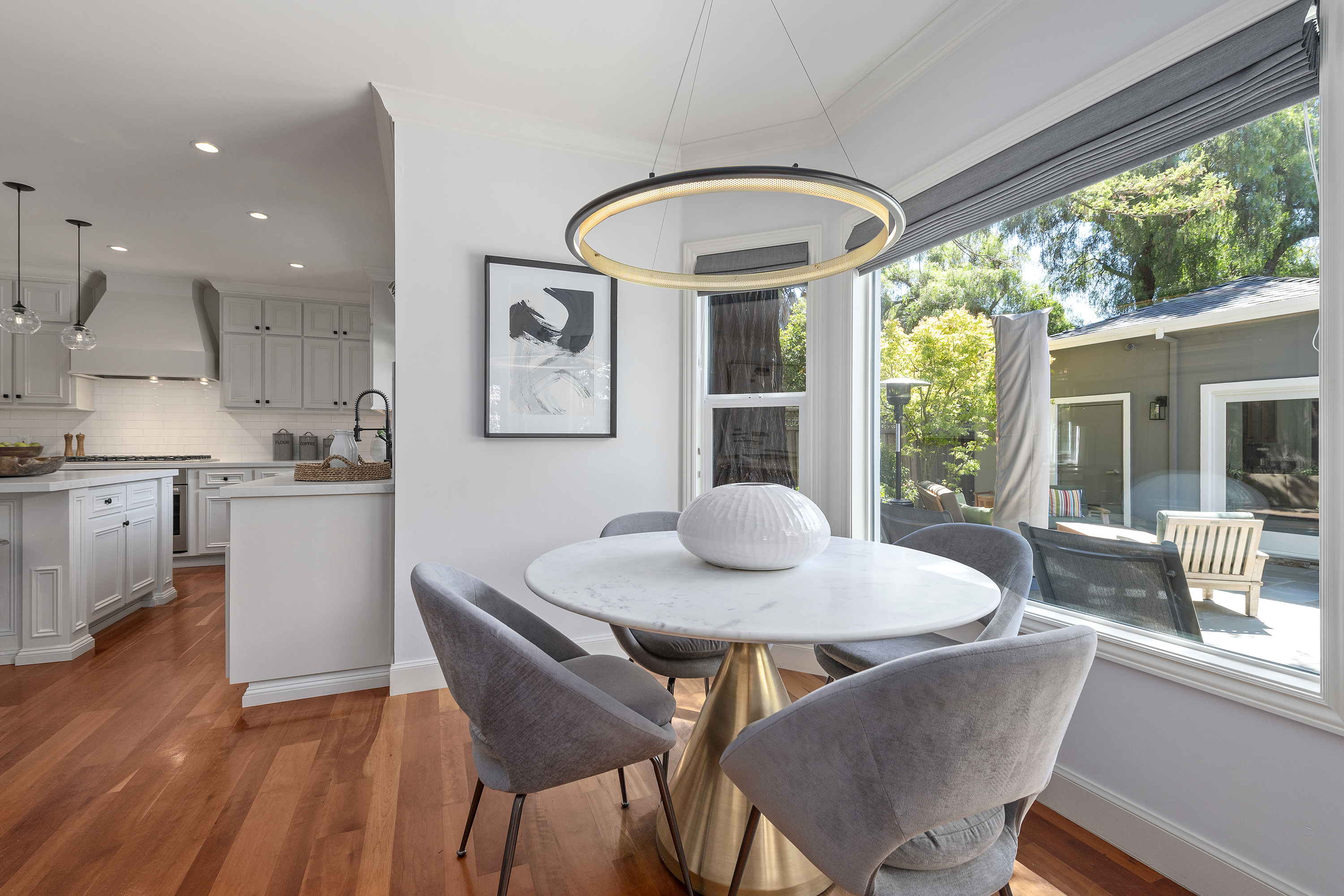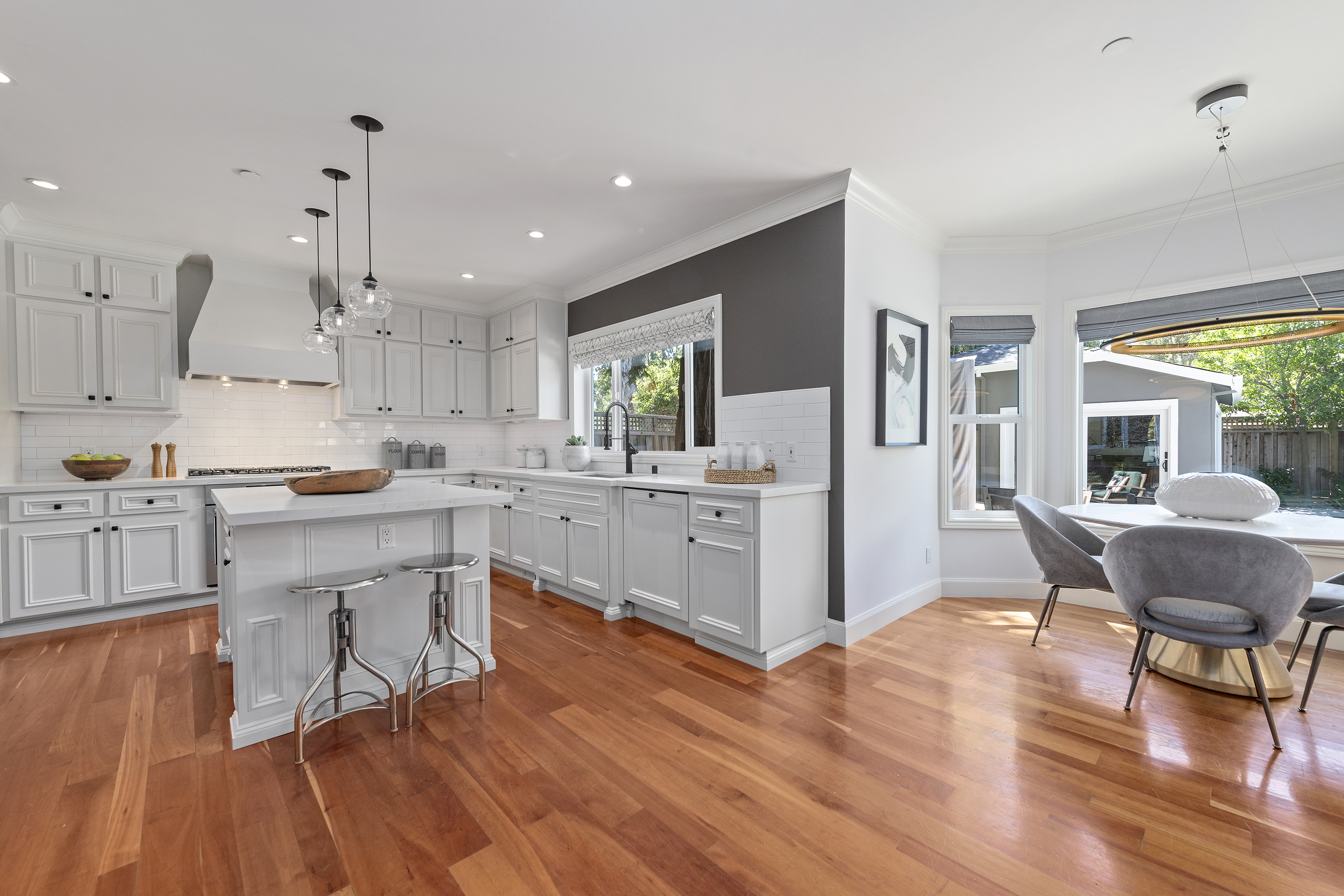 Chef's Eat-in Kitchen with Center Island, Quartz Countertops, and Eat-in Nook