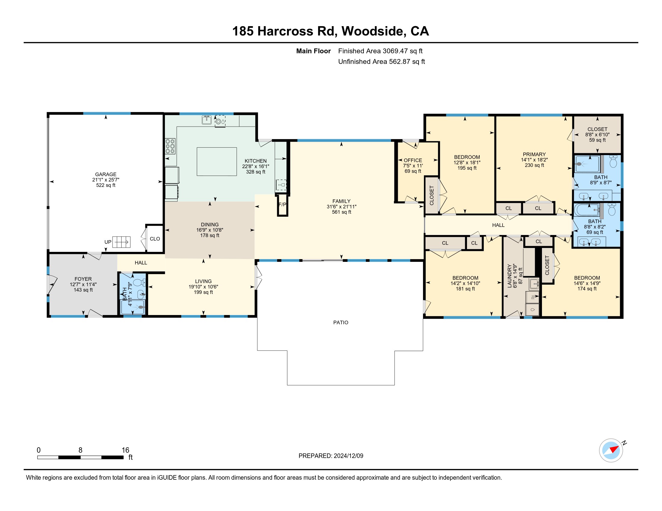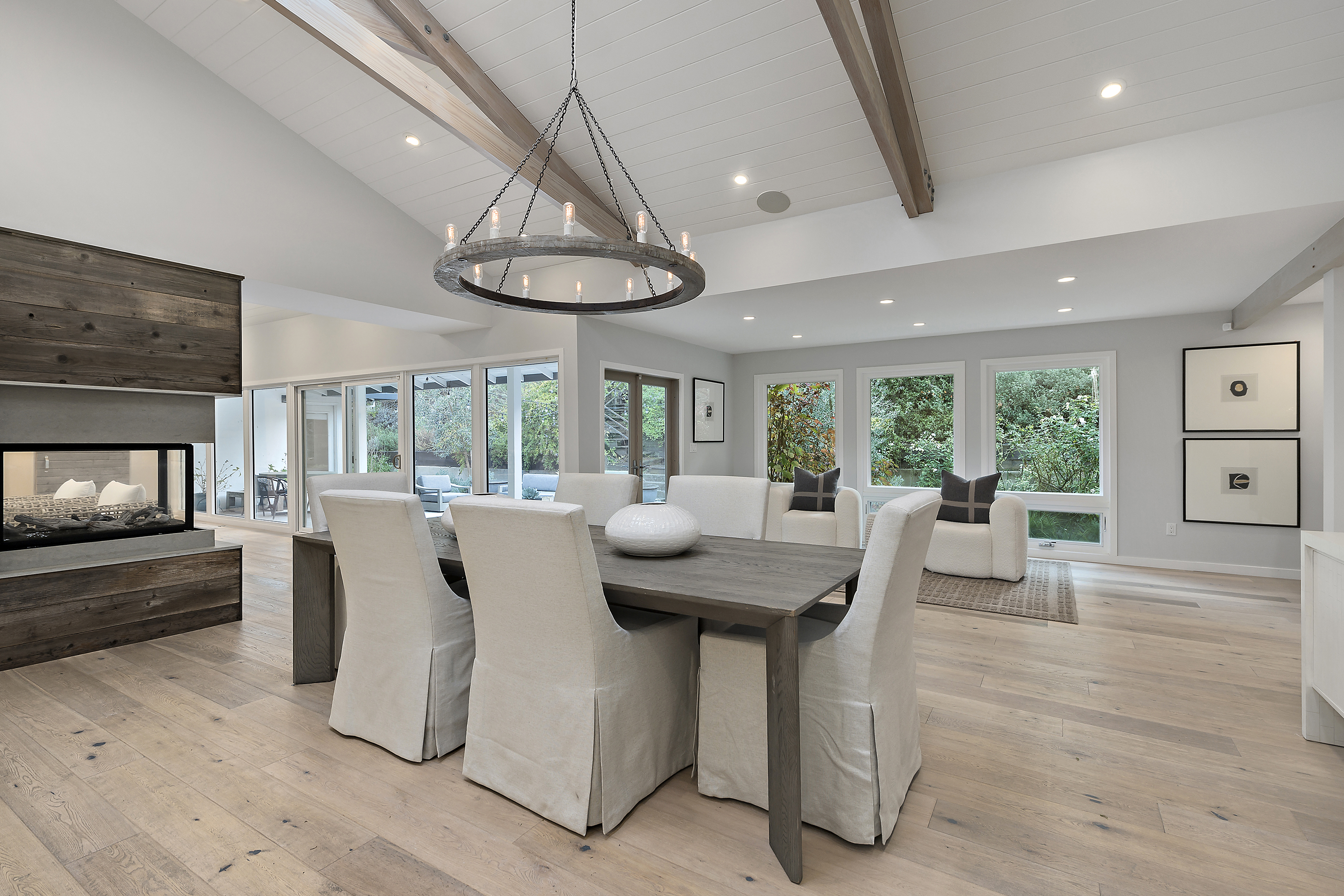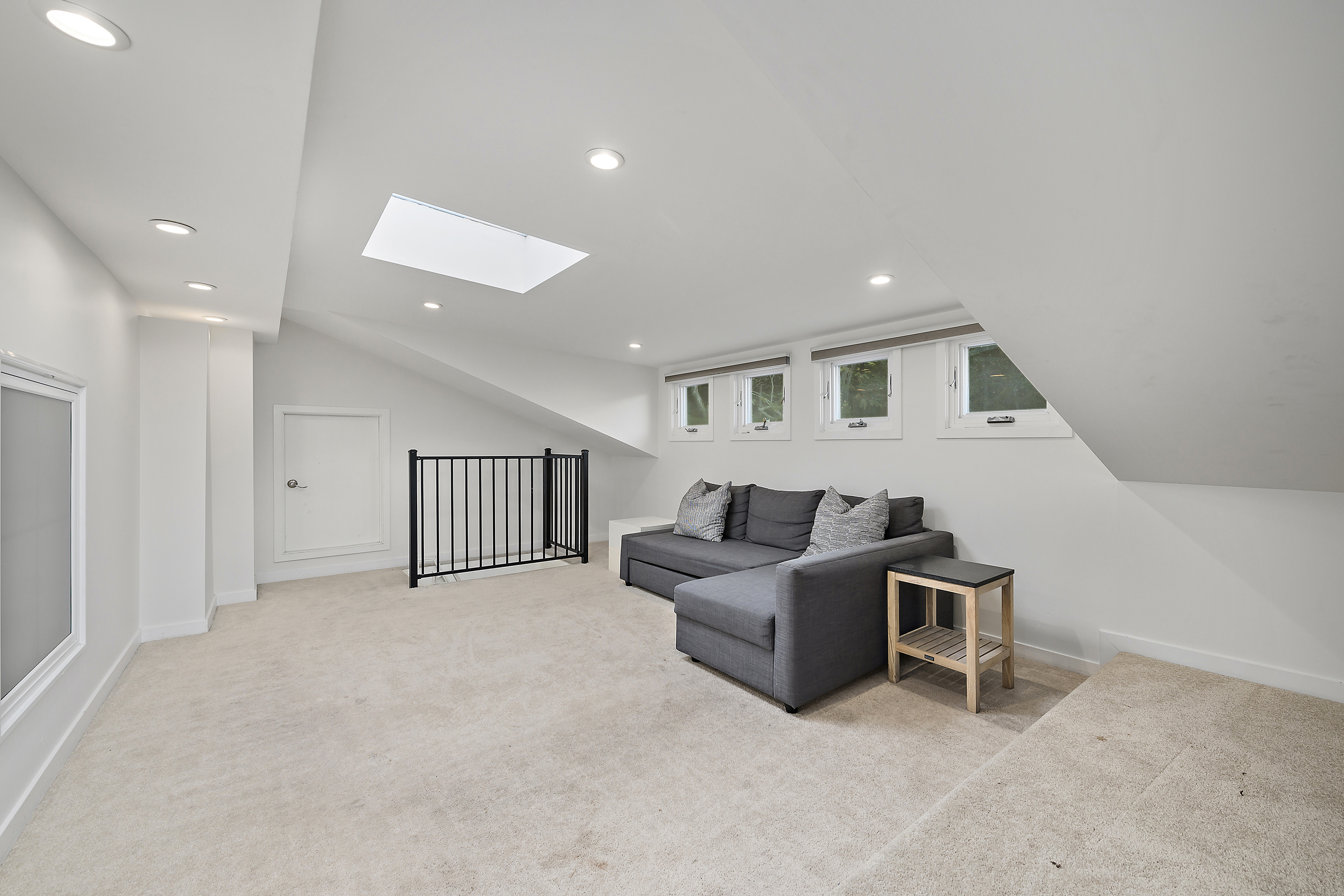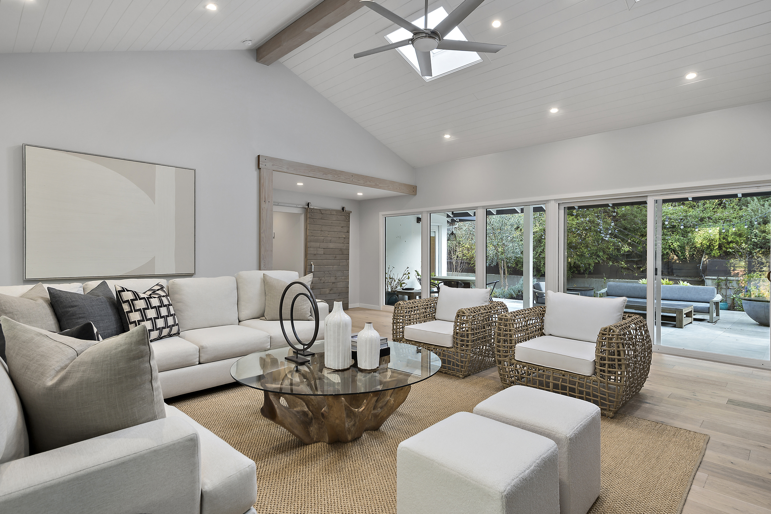 Spacious Family Room with Skylights, Vaulted Ceilings, and Fireplace