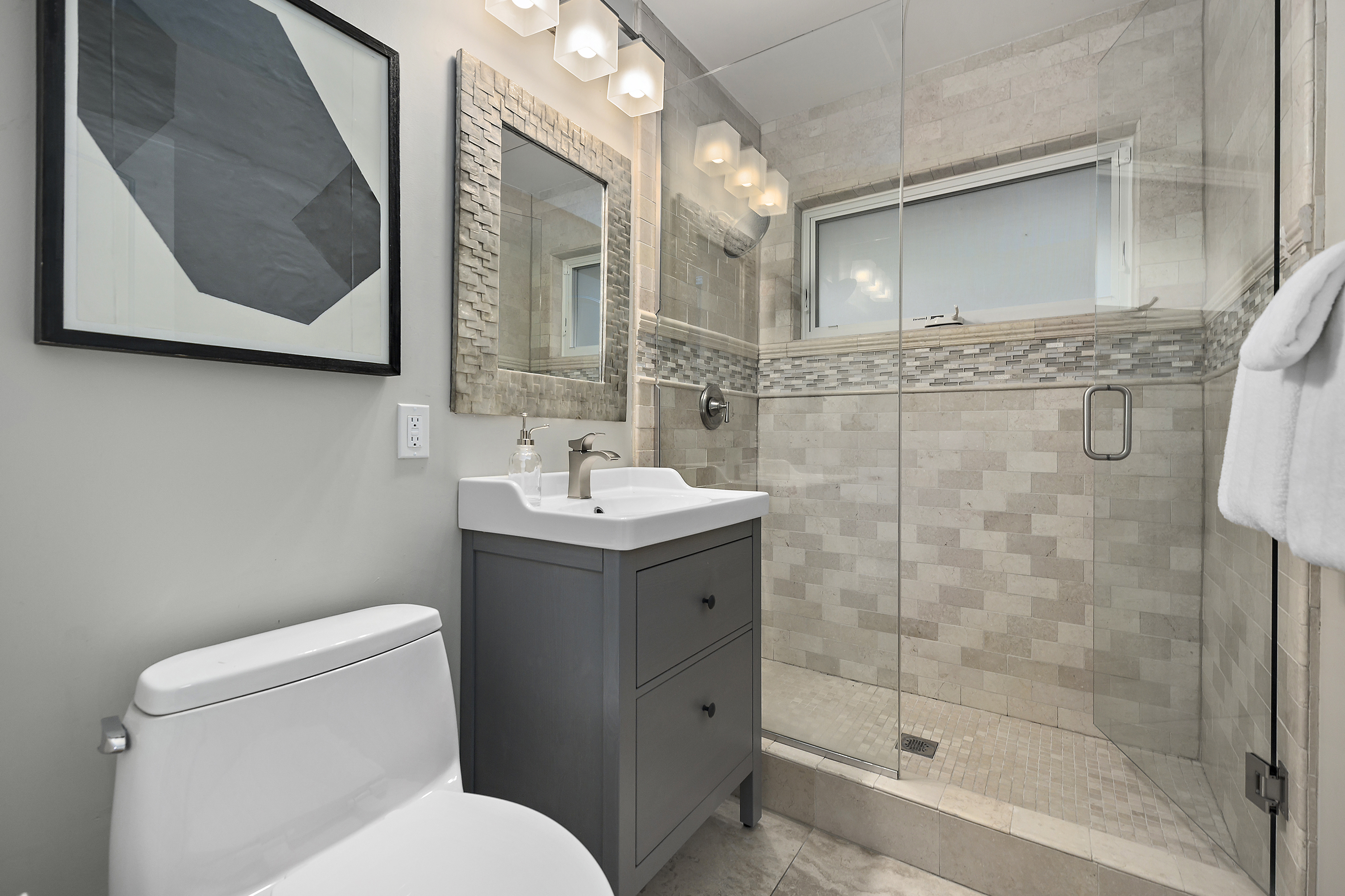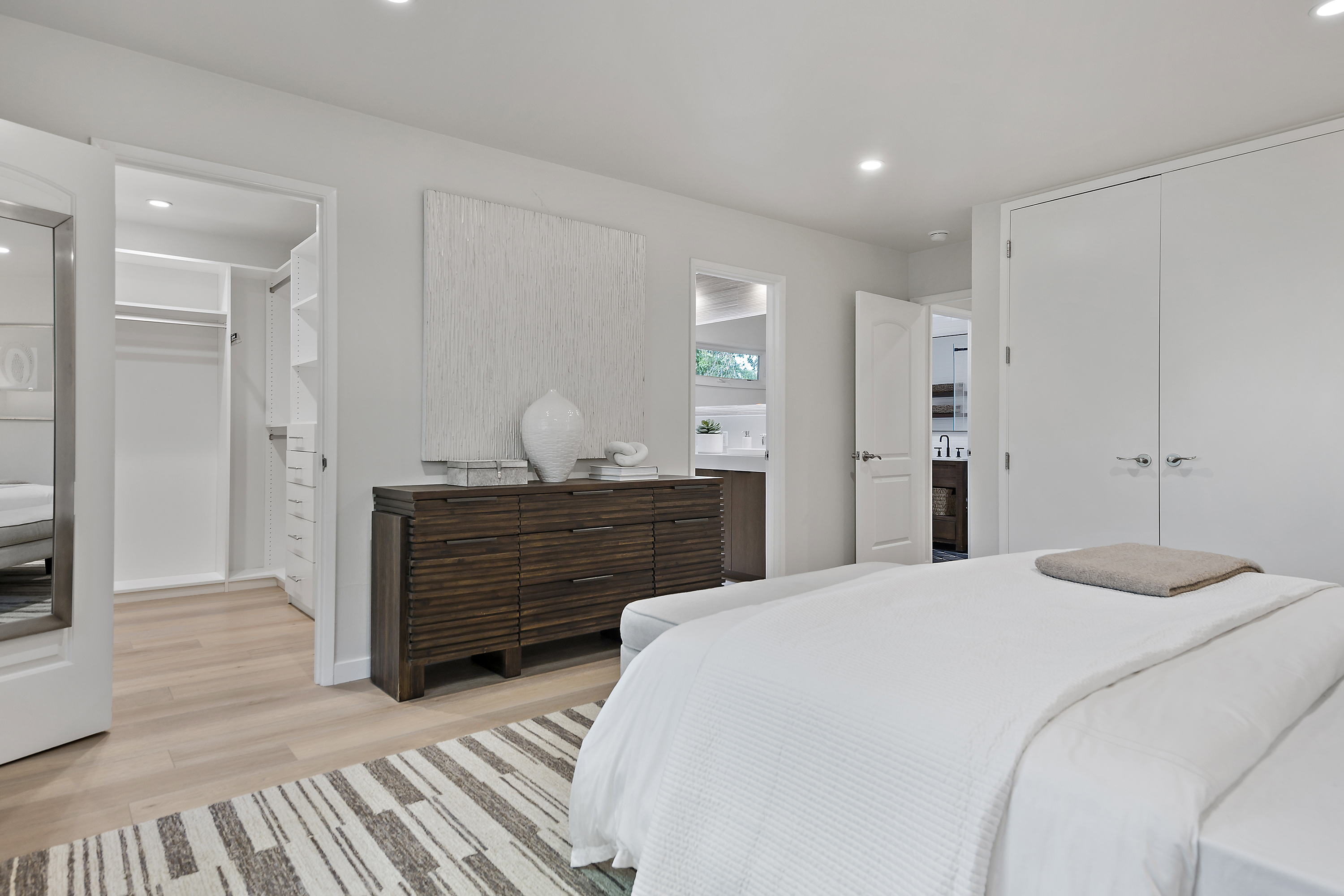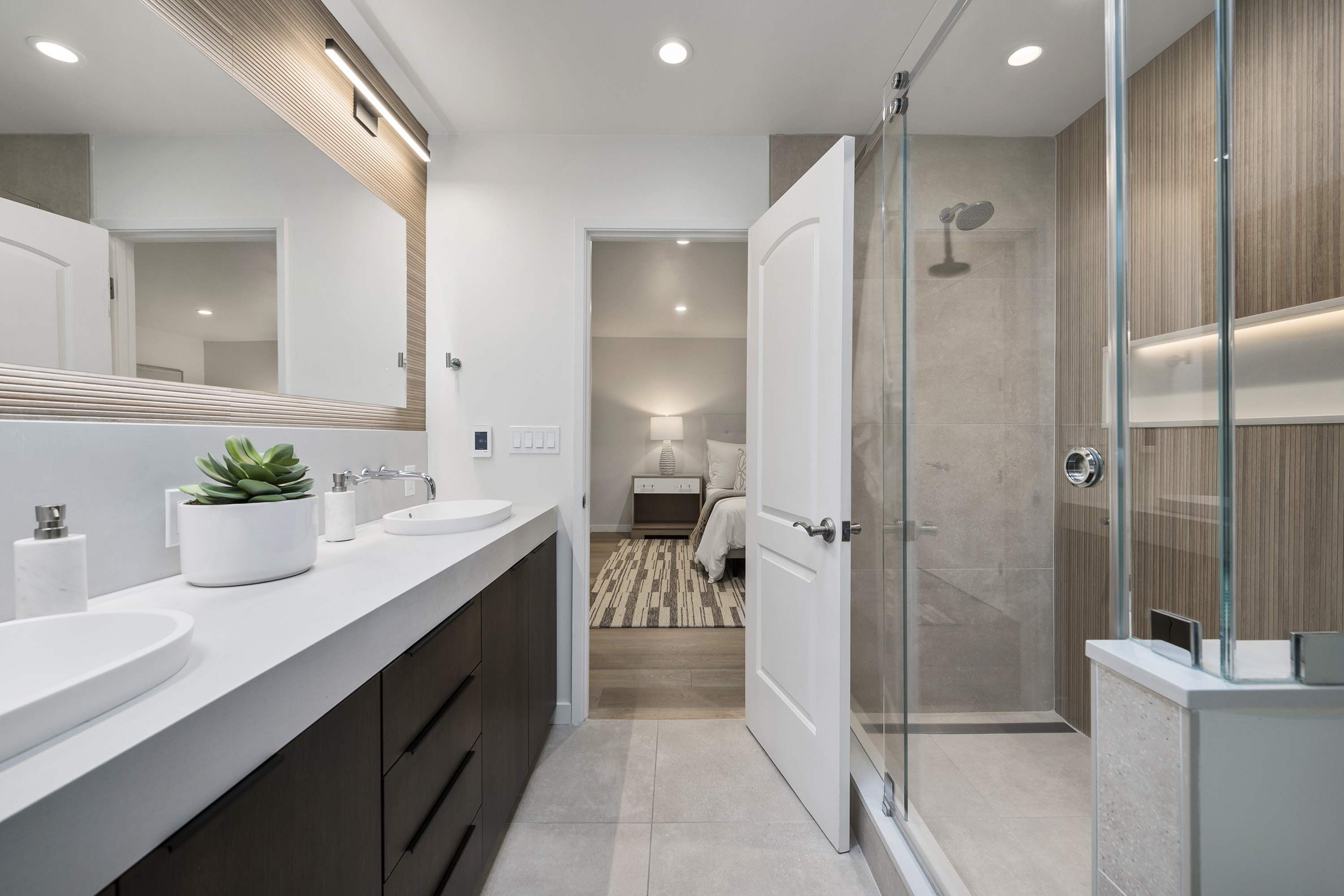 Primary Suite Retreat Features Double Sinks, Stall Shower, and Walk-in Closet