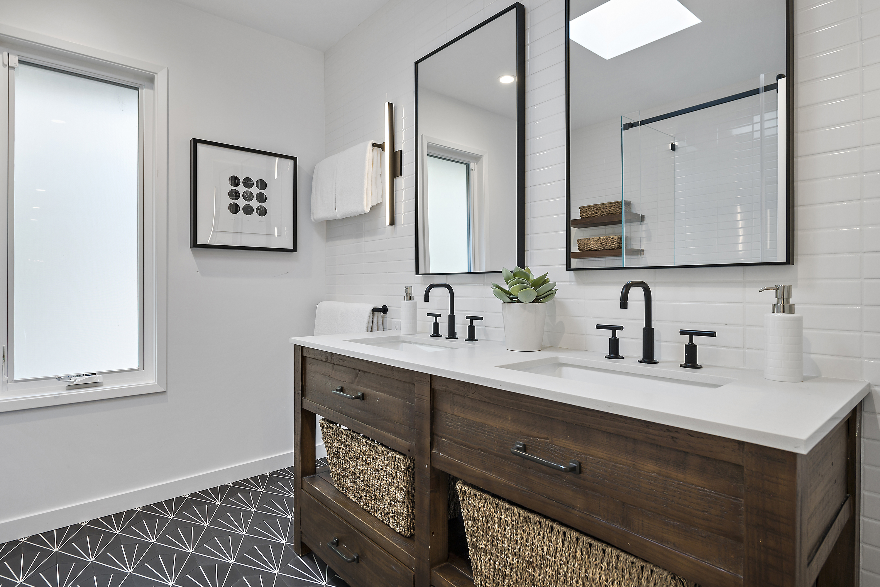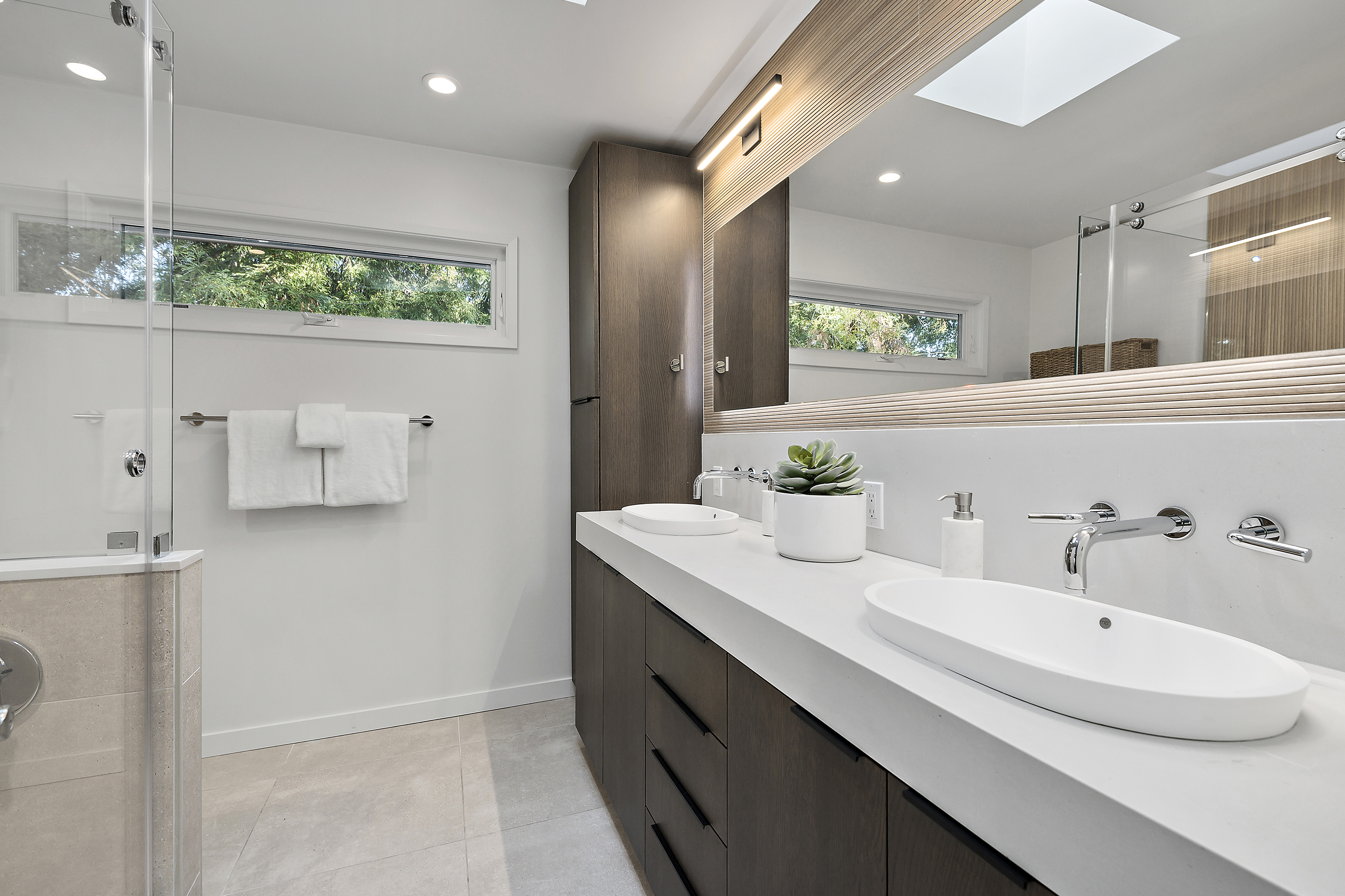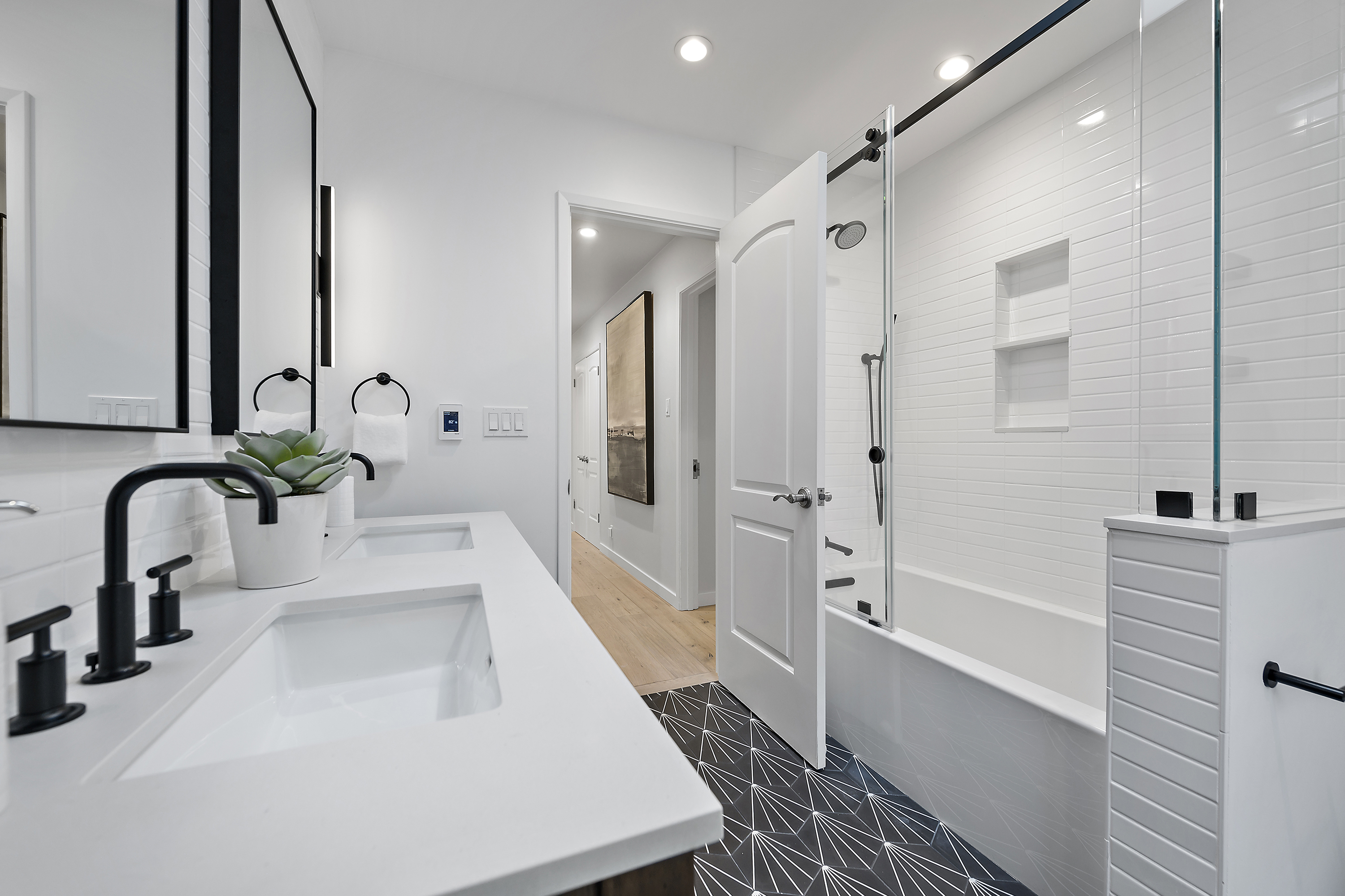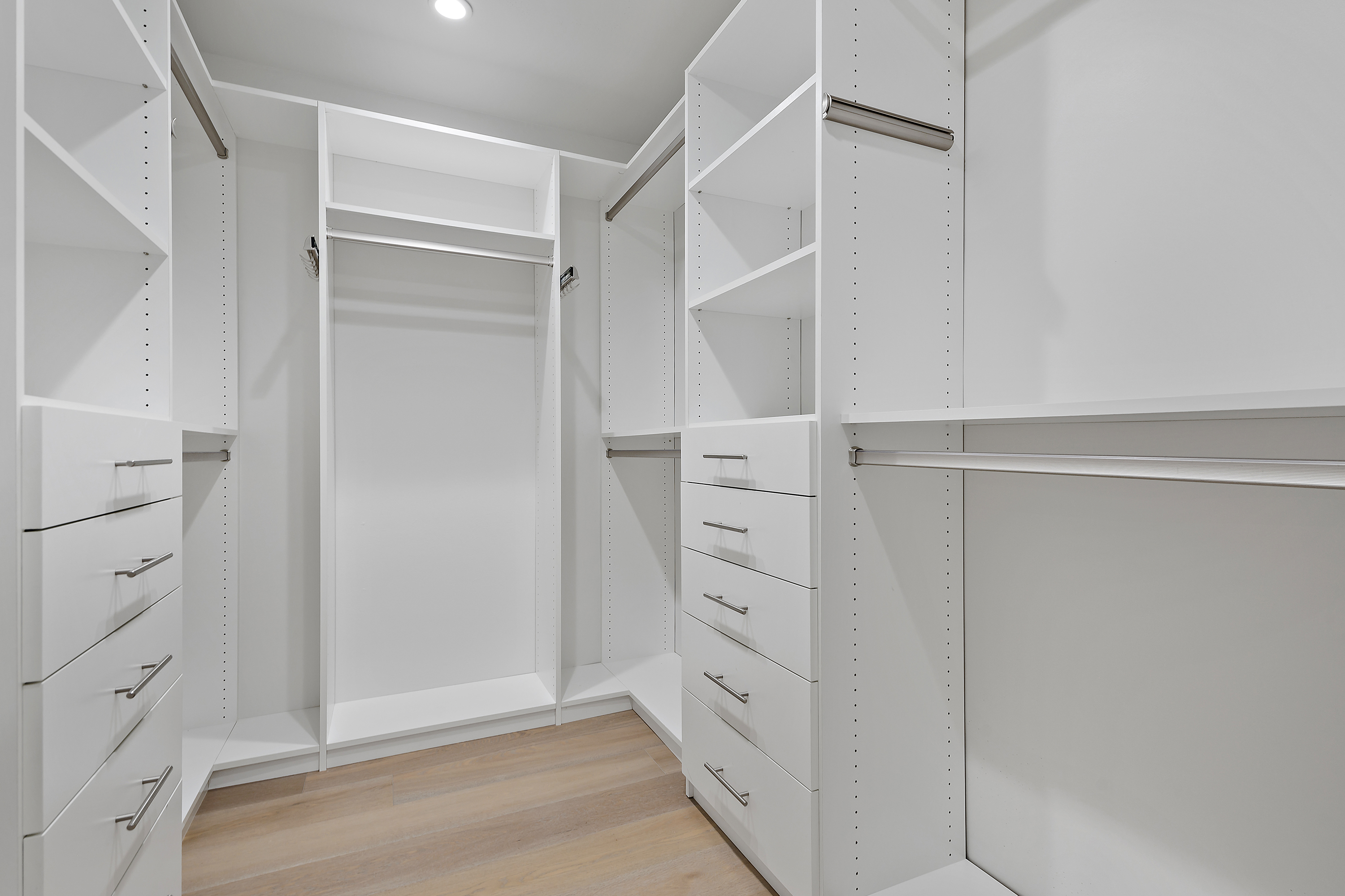 Primary Suite Retreat Features Double Sinks, Stall Shower, and Walk-in Closet
