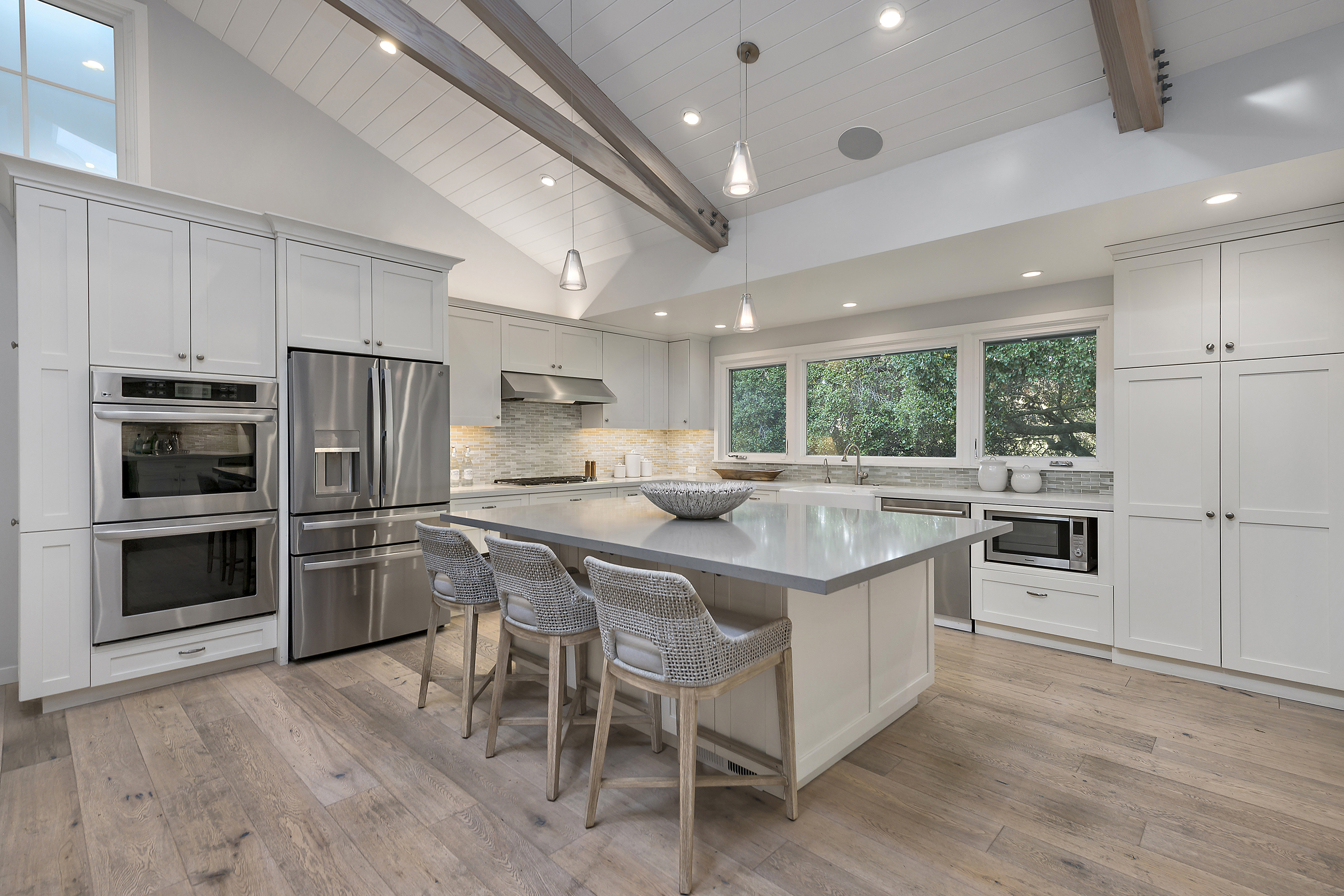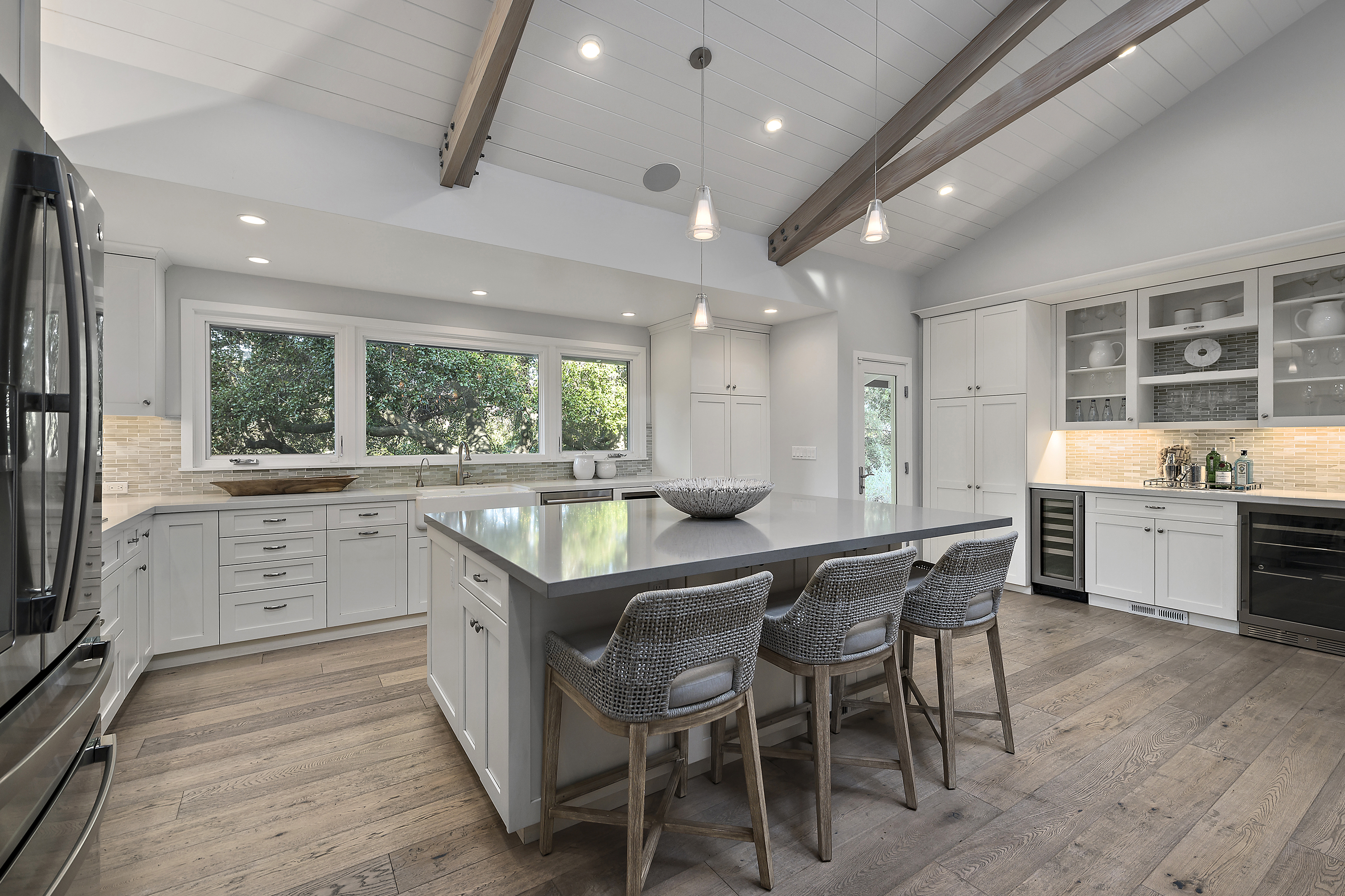 Chef's Kitchen with Center Island, Wine Refrigerator, and Stainless Steel Appliances