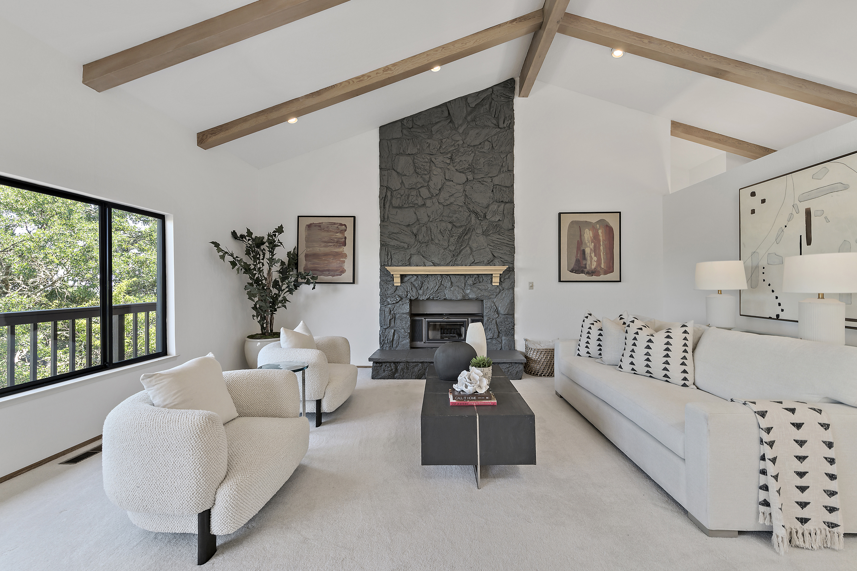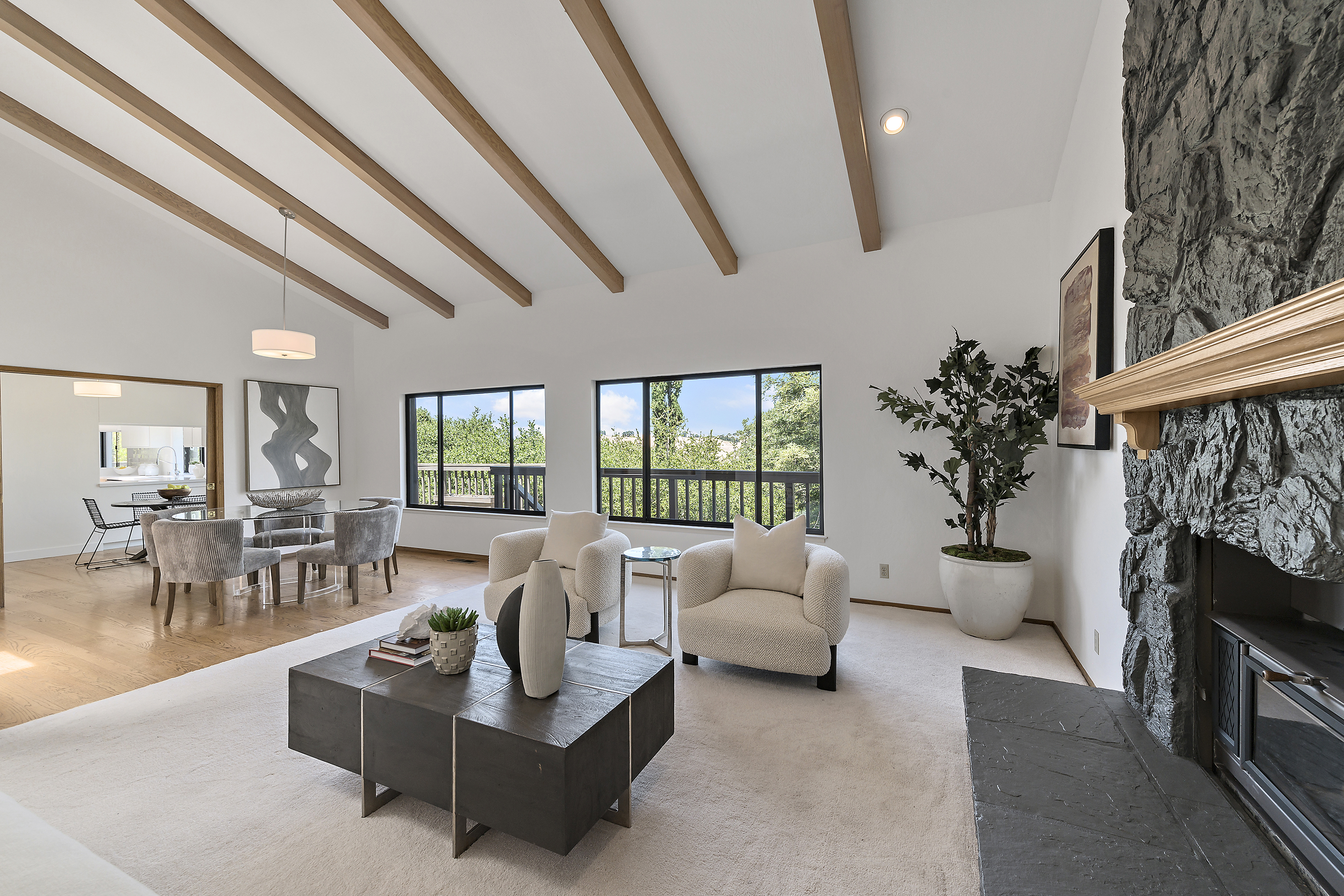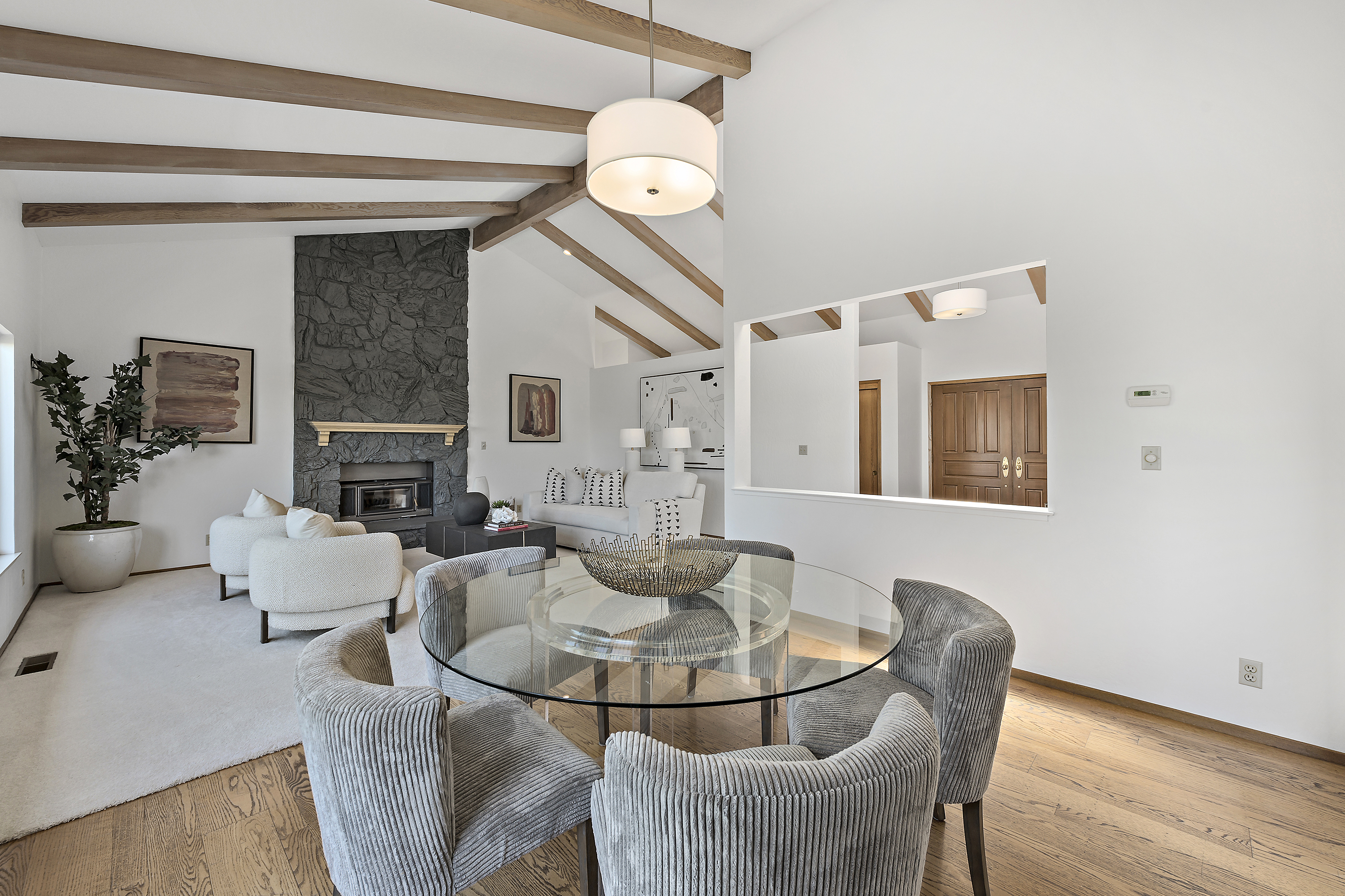 Elegant Living Room with Fireplace and Vaulted Ceilings