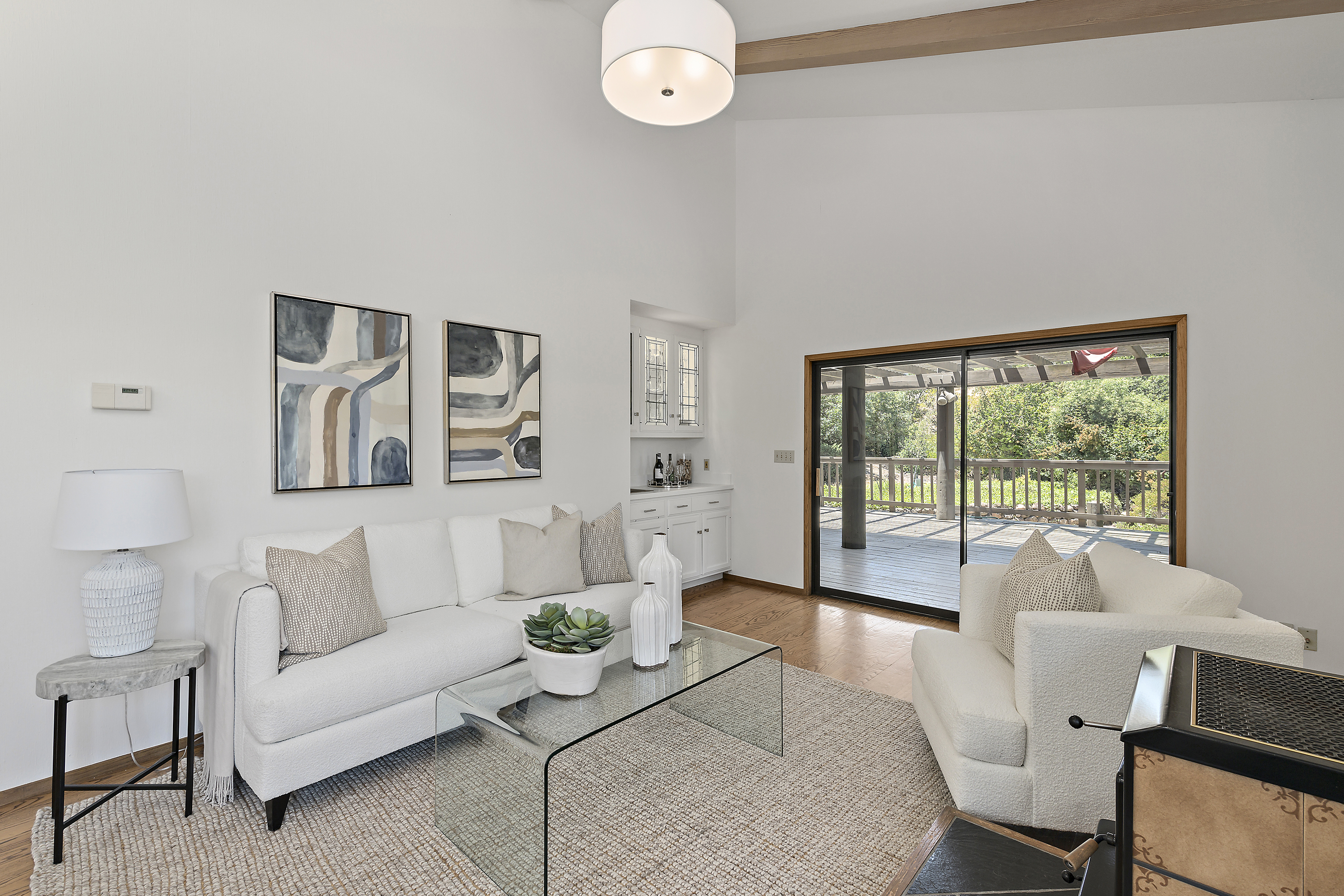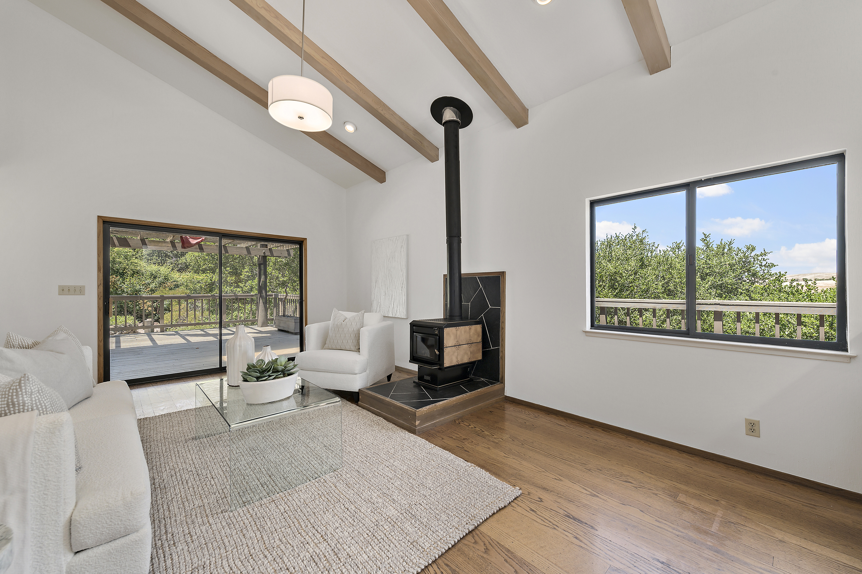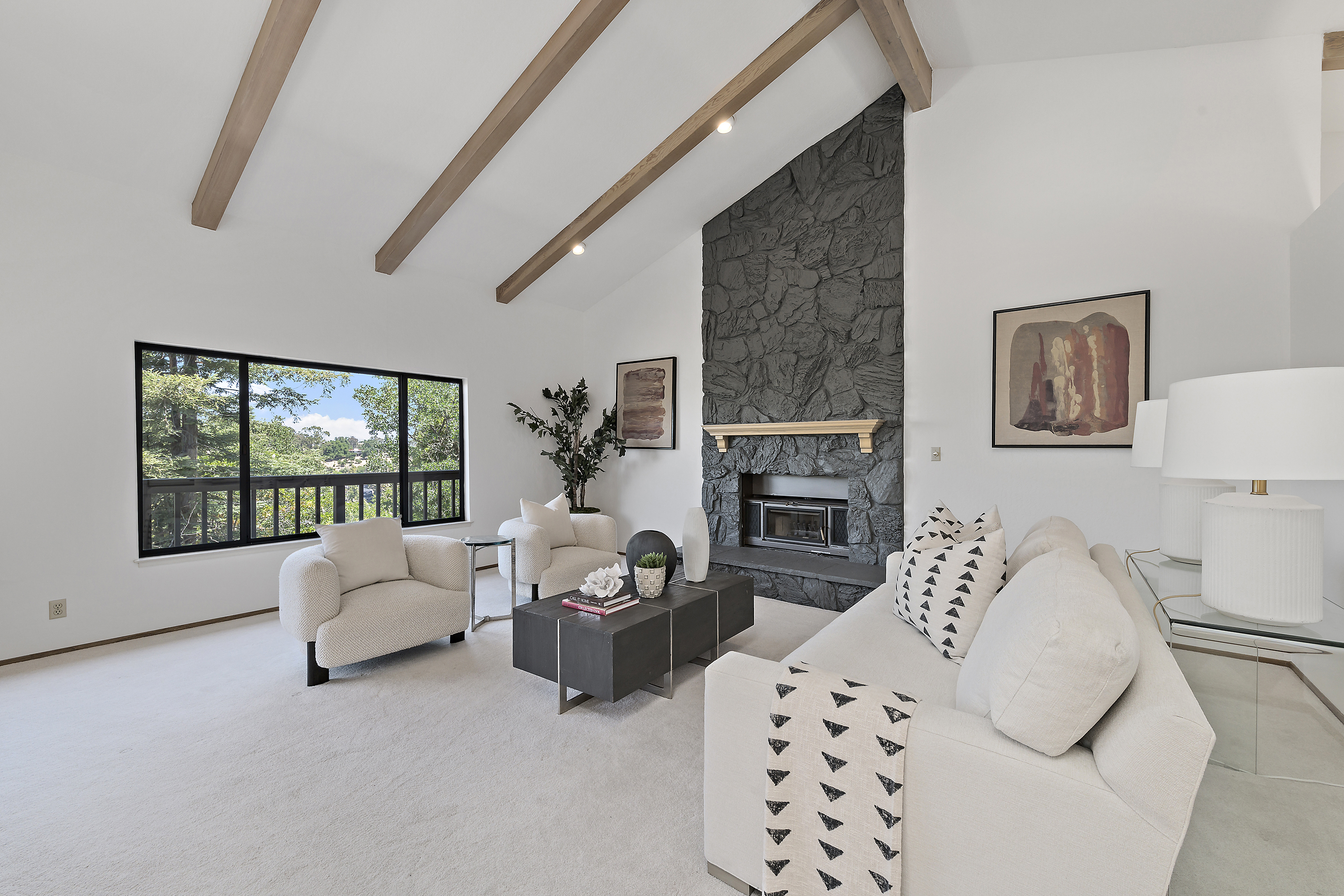 Elegant Living Room with Fireplace and Vaulted Ceilings