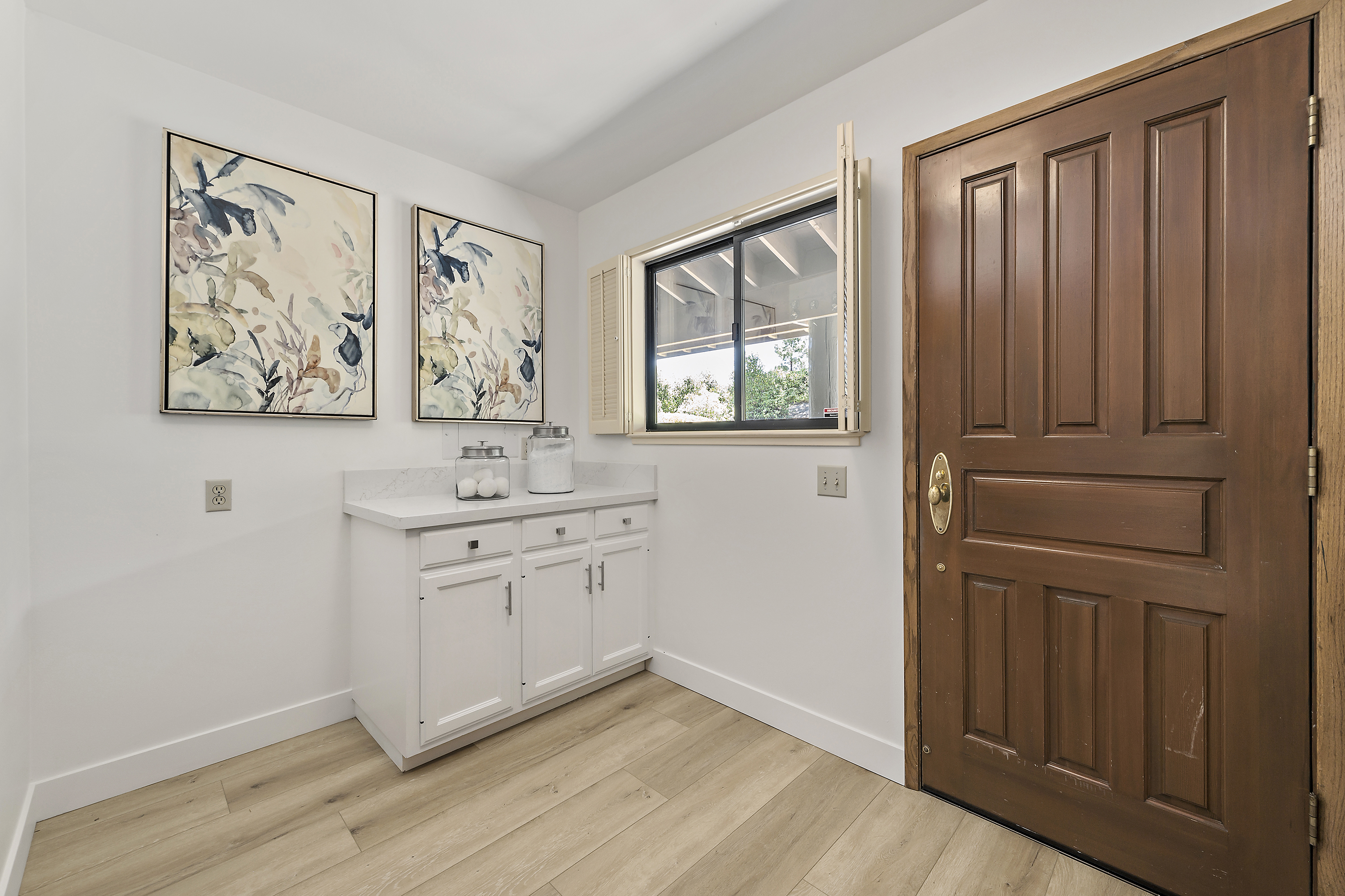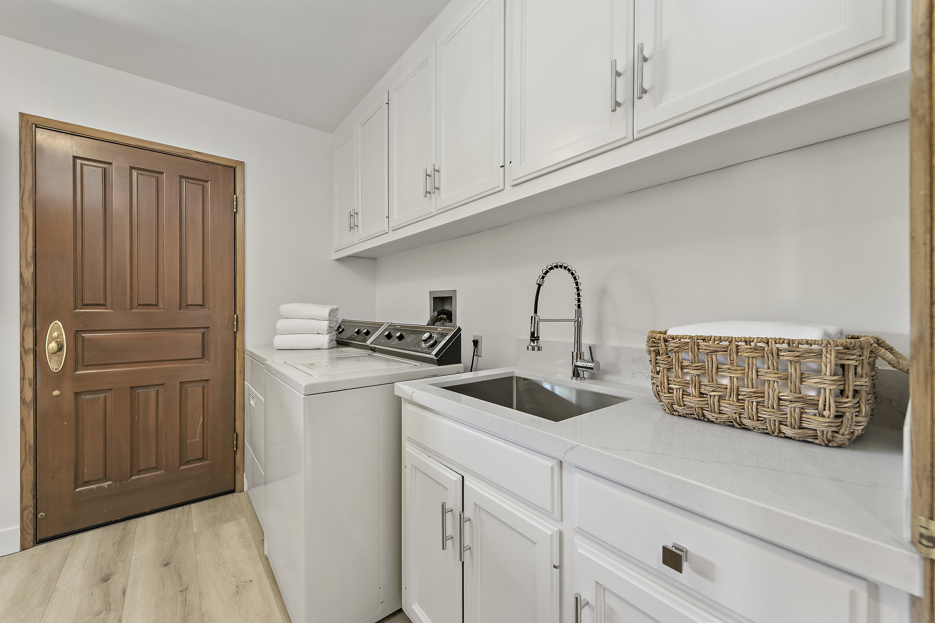 Inside Laundry Room with Sink and Built-in Cabinets
