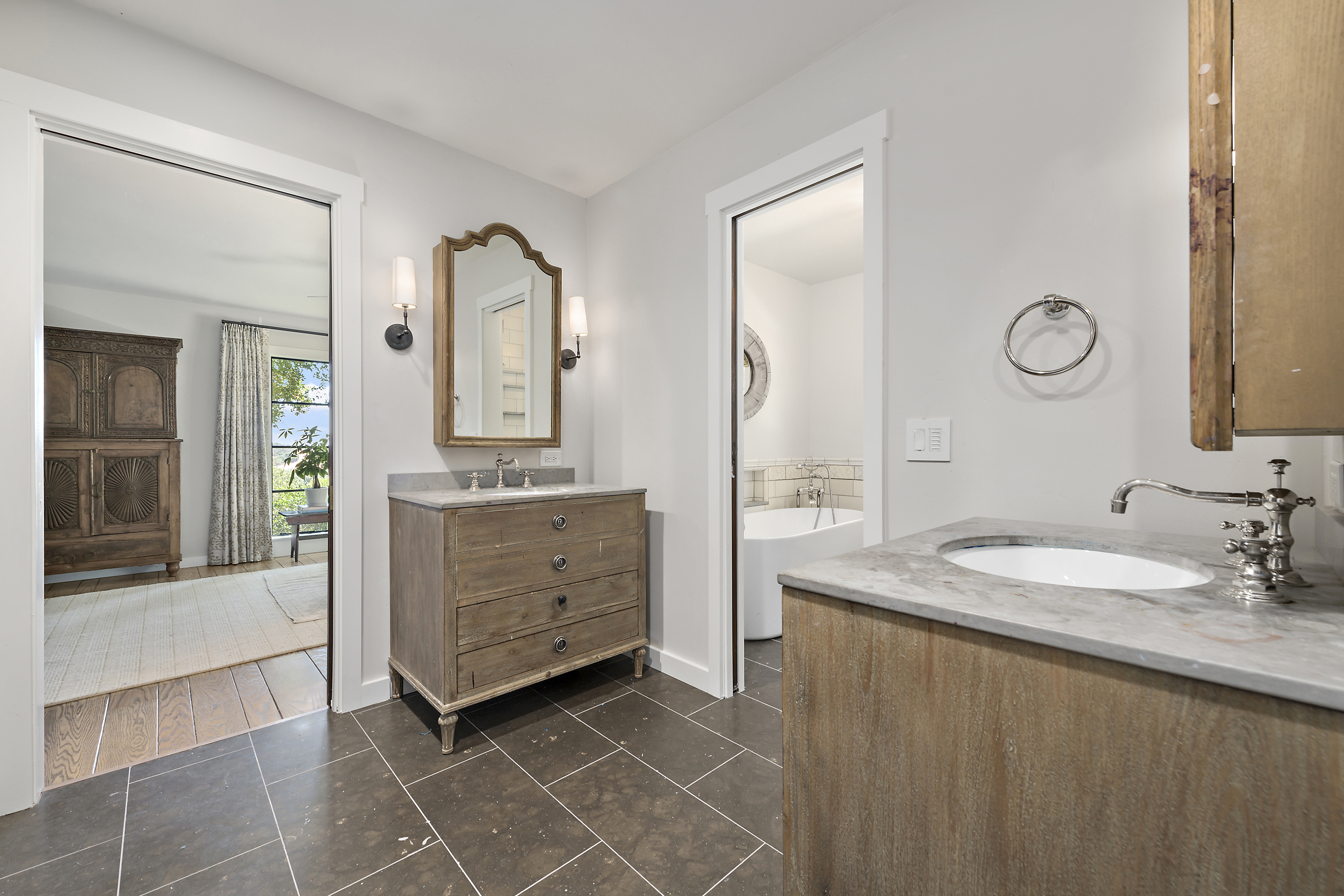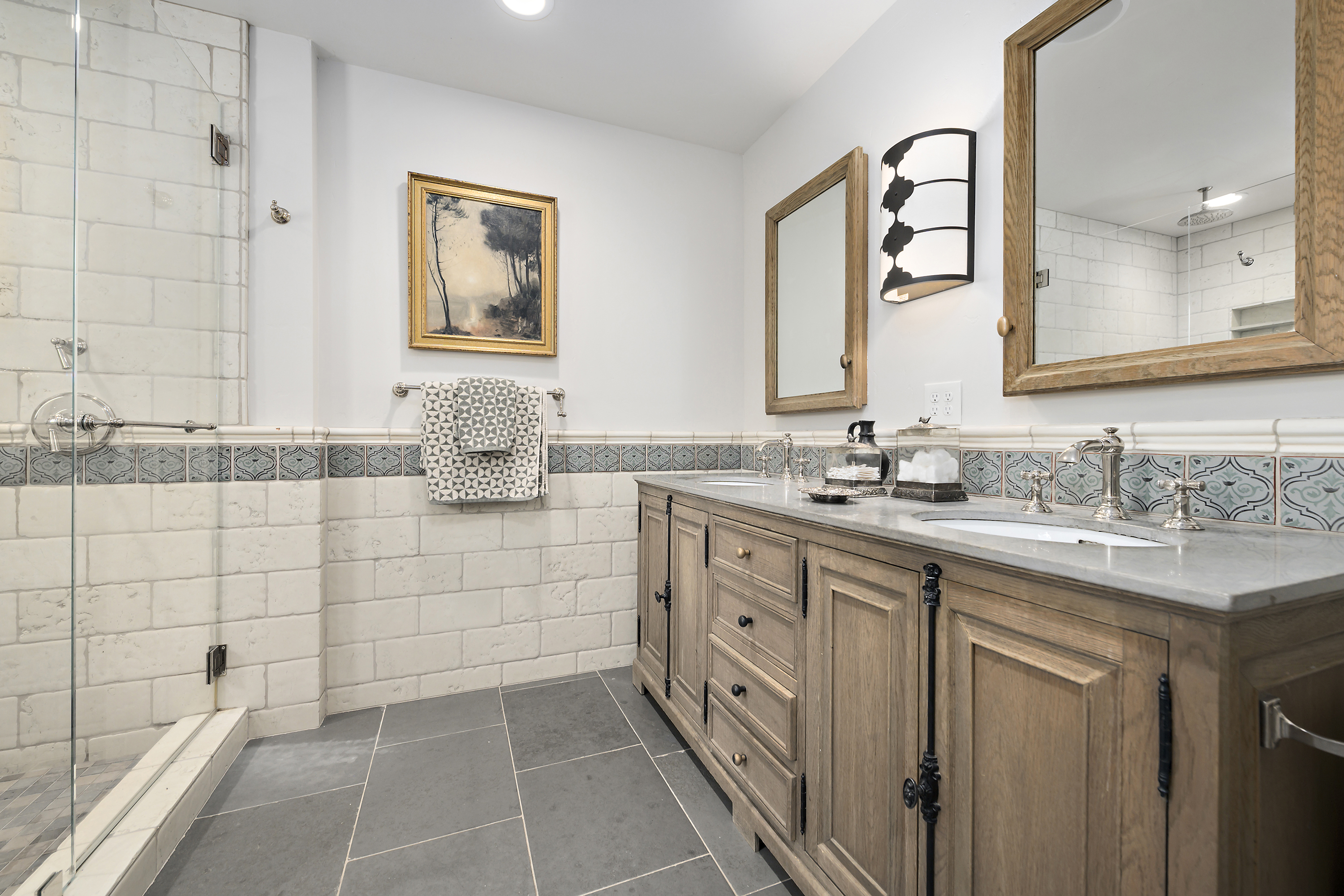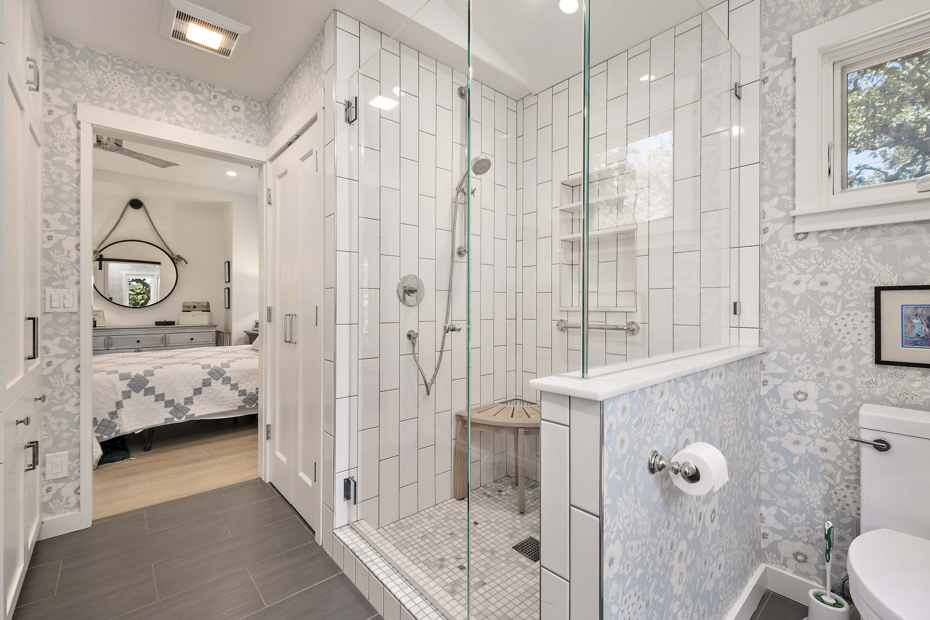 Primary Suite Retreat Features Double Sinks, Stall Shower, and Walk-in Closet
