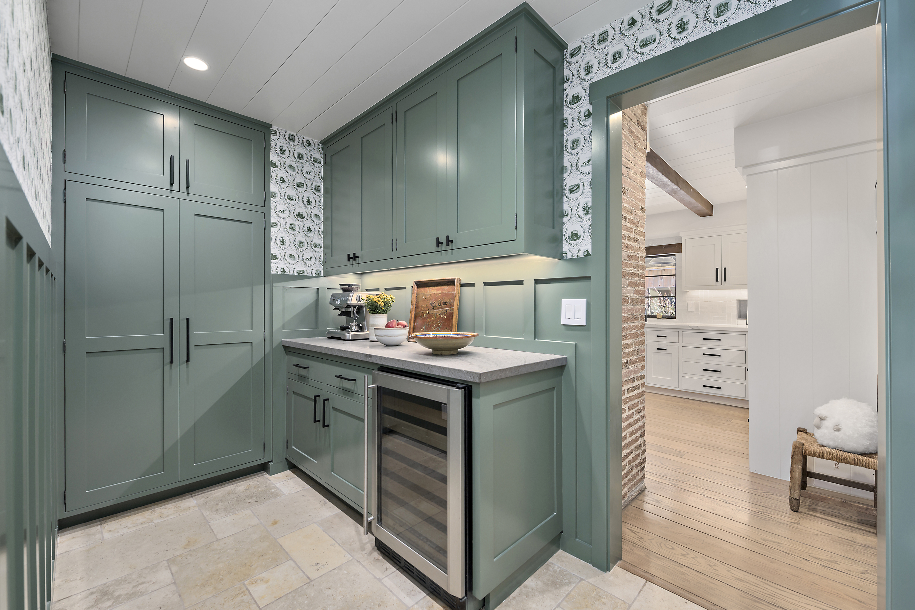 Mud Room with Built-in Cabinets, Wine Refrigerator, and Washer and Dryer