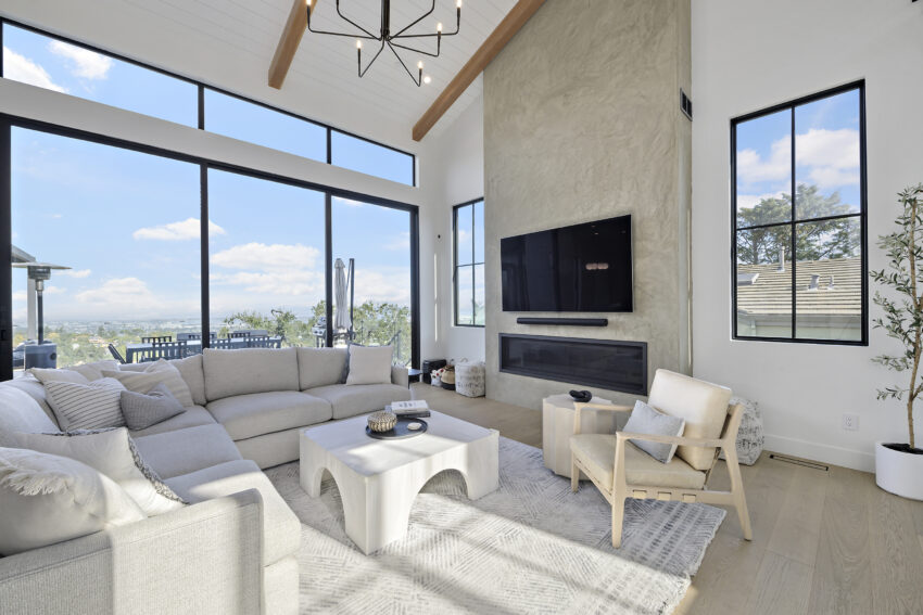- Opens to Spacious Family Room with Fireplace and Multi-Slide Doors with Stunning Views of the City and Mountains
